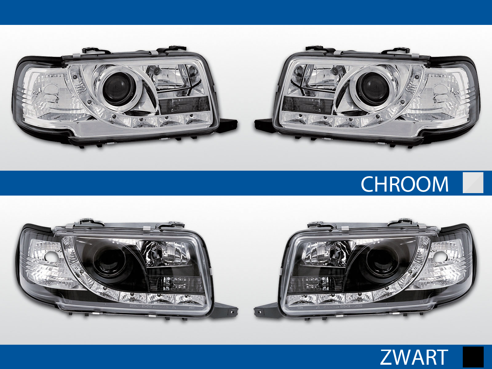 BeschrijvingDevil Eyes koplampen voor Audi 80 B4, verkrijgbaar in zwart of chroom.