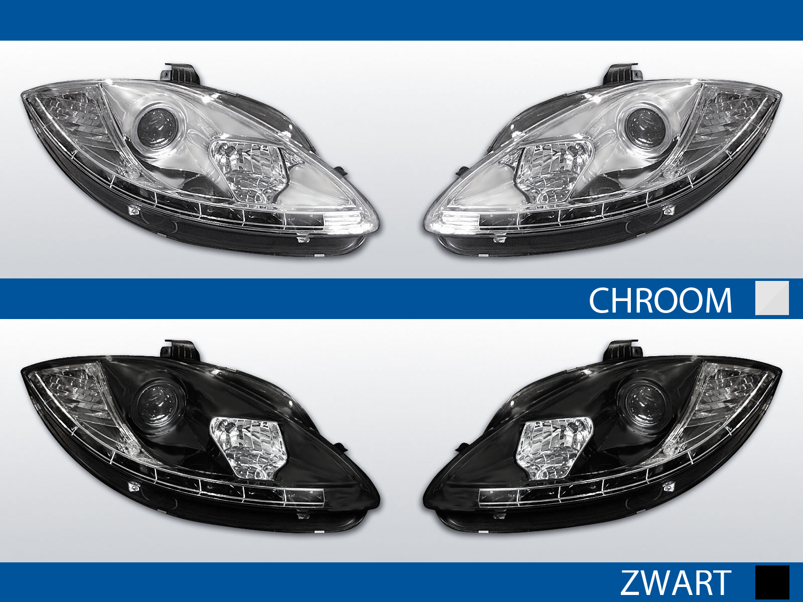 BeschrijvingLED DRL koplampen voor Seat Leon / Altea / Toledo 2005-2009 in chroom