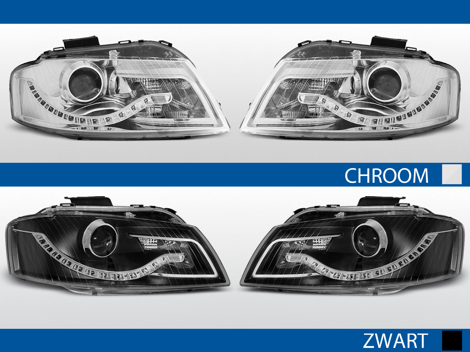 BeschrijvingDevil Eye koplampen voor Audi A3 8P 2003-2008 in chroom