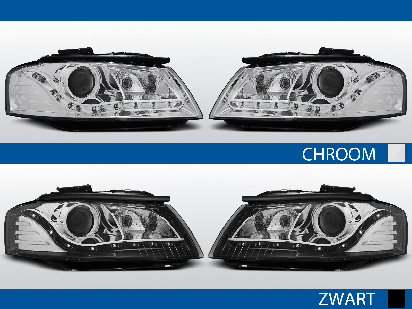 BeschrijvingDevil Eye koplampen voor Audi A3 8P 2003-2008 in chroom