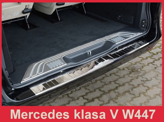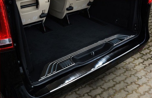 Achterbumper bescherming voor Mercedes-Benz V-Klasse / Vito in de kleuren; RVS zilver, zwart en chroom.