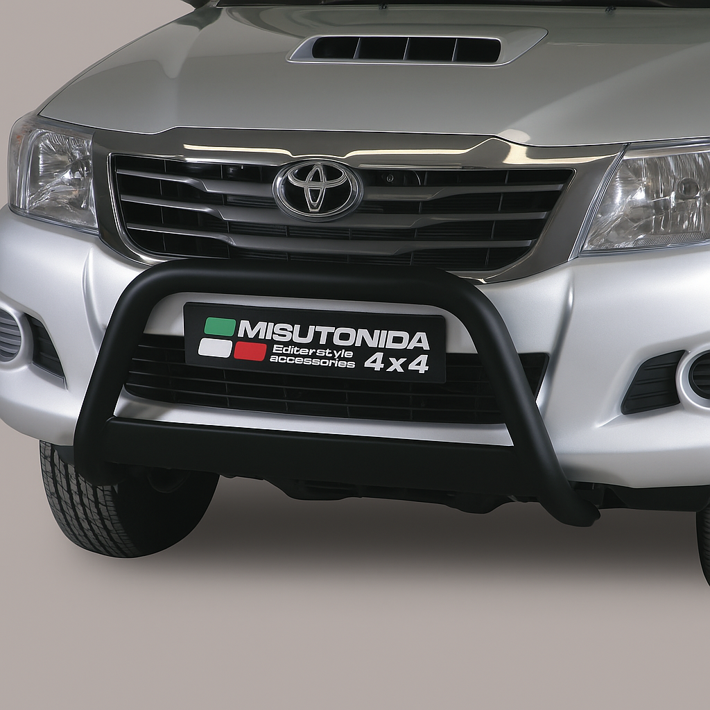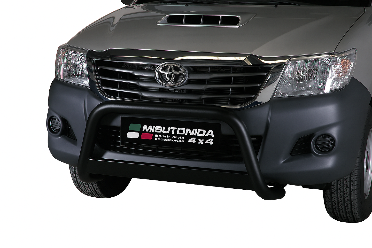 Bescherm en verfraai je auto met een Super Bar pushbar van Italiaans design & fabricaat: Misutonida, fabriceert deze bullbar van hoogwaardig 76 mm RVS . De 100% op maat ontwikkelde bullbar geeft je Toyota Hilux een robuuste uitstraling en beschermt de auto tegen schade bij een aanrijding met obstakels.