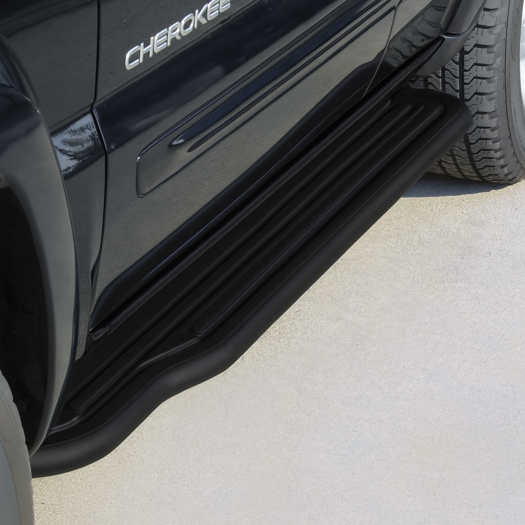 Side steps geschikt voor; Jeep Cherokee 2001-2005, 5d suv/crossover, Jeep Cherokee 2005-2008, 5d suv/crossover modellen. Met een side bar set van Misutonida bescherm je de dorpels van je auto en geef je je Jeep Cherokee direct een nog robuustere en exclusieve uitstraling.
