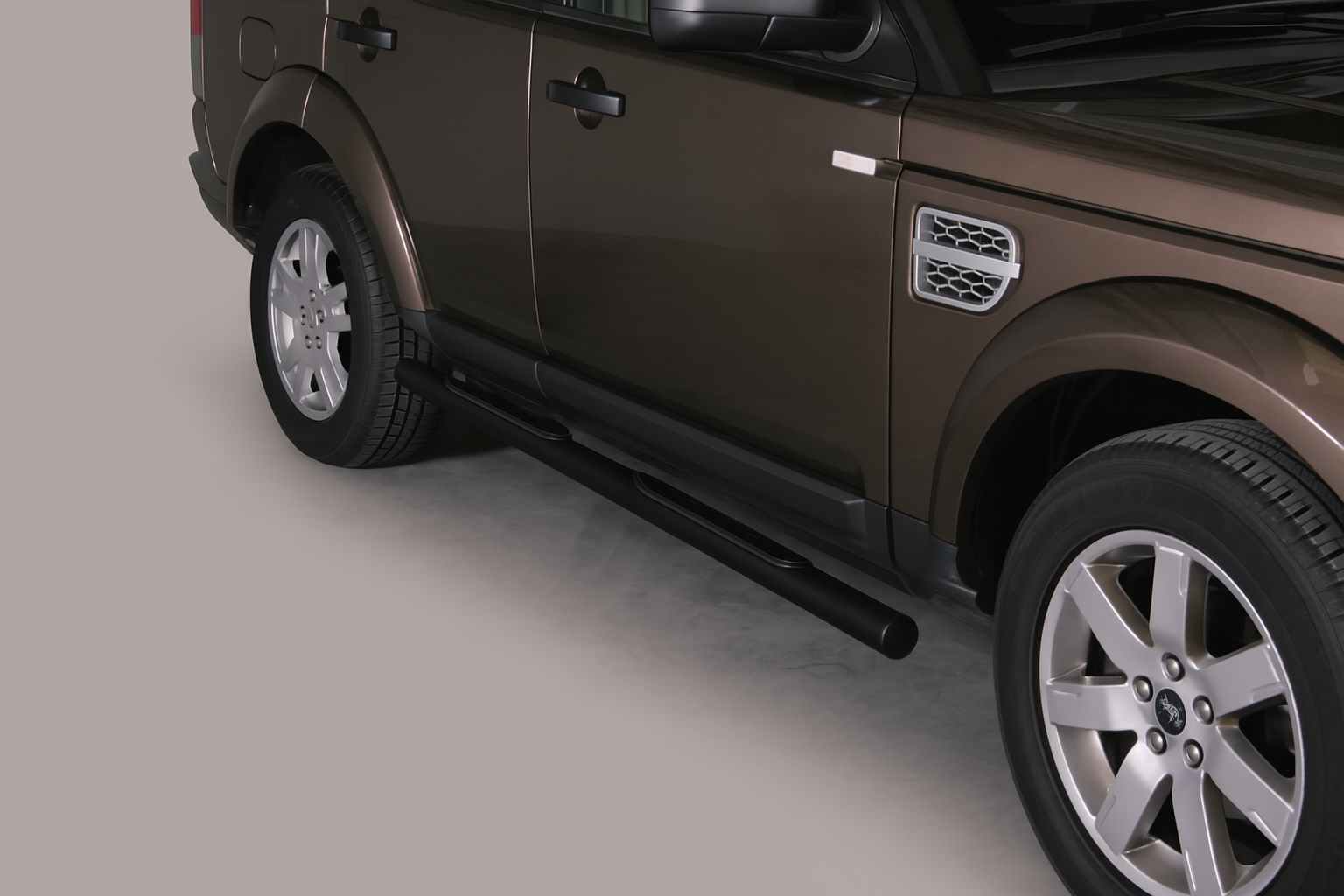 Bescherm en verfraai je auto met een " Pedana " side step set van de Italiaanse topfabrikant: Misutonida, fabriceert deze side bars van hoogwaardig 50 mm RVS . De 100% op maat ontwikkelde steps geven je Land Rover Discovery een robuuste uitstraling en beschermt de auto / dorpels tegen schade bij een aanrijding met obstakels.