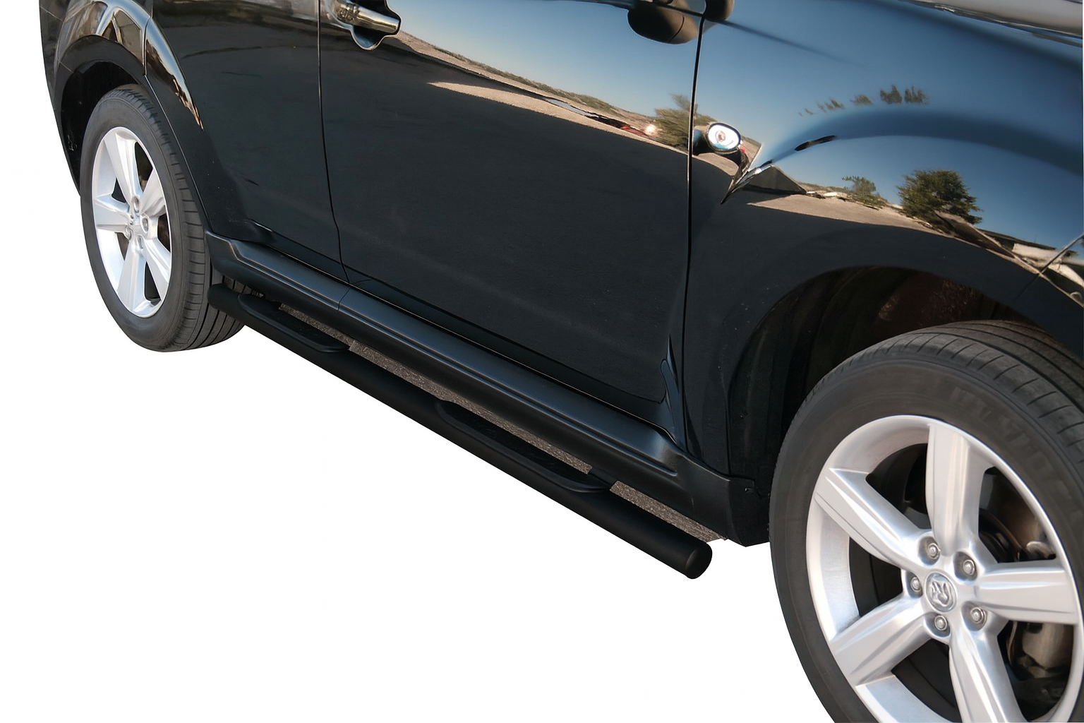 Bescherm en verfraai je auto met een " Pedana " side step set van de Italiaanse topfabrikant: Misutonida, fabriceert deze side bars van hoogwaardig 50 mm RVS . De 100% op maat ontwikkelde steps geven je Peugeot 4007 een robuuste uitstraling en beschermt de auto / dorpels tegen schade bij een aanrijding met obstakels.