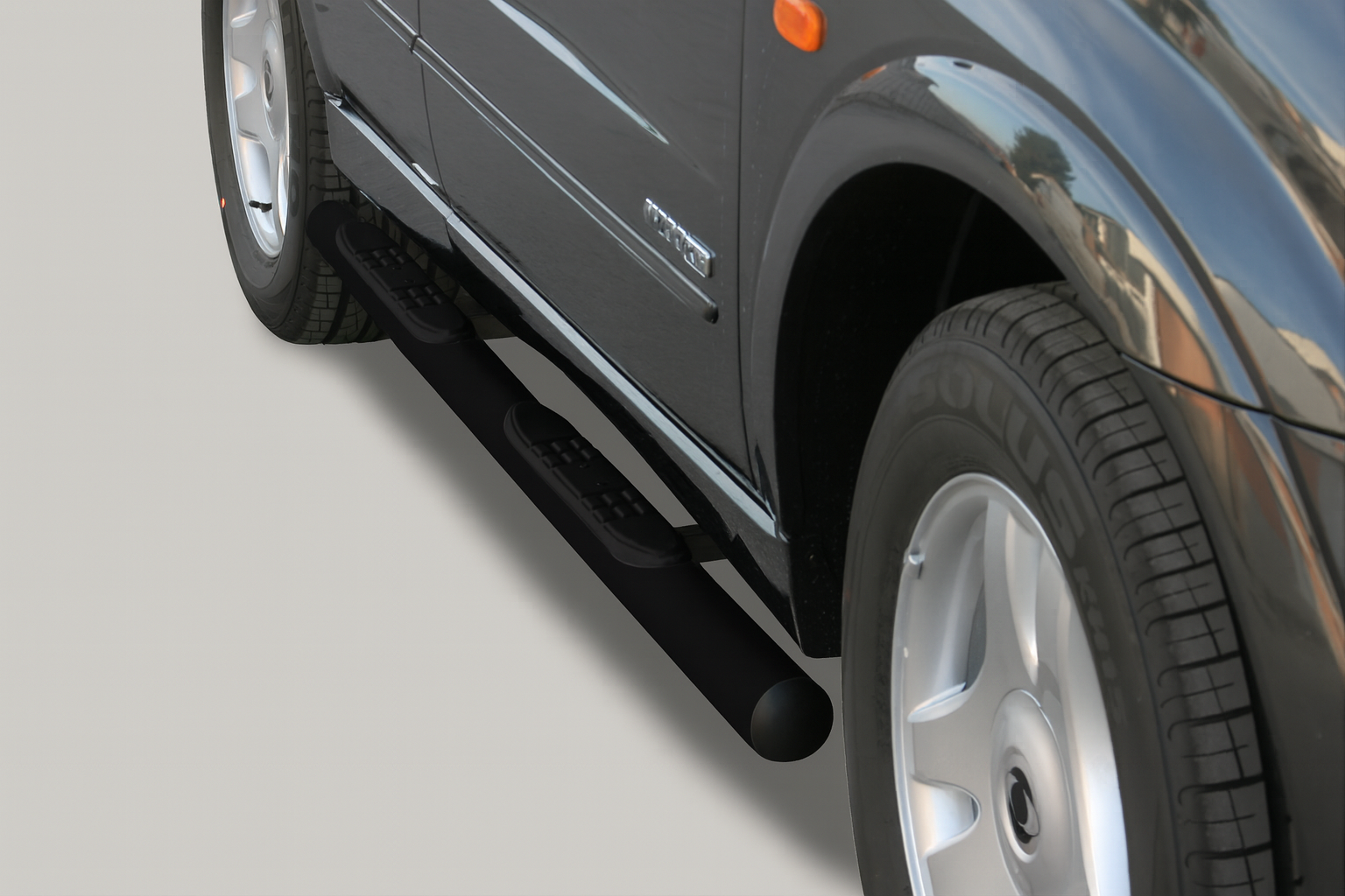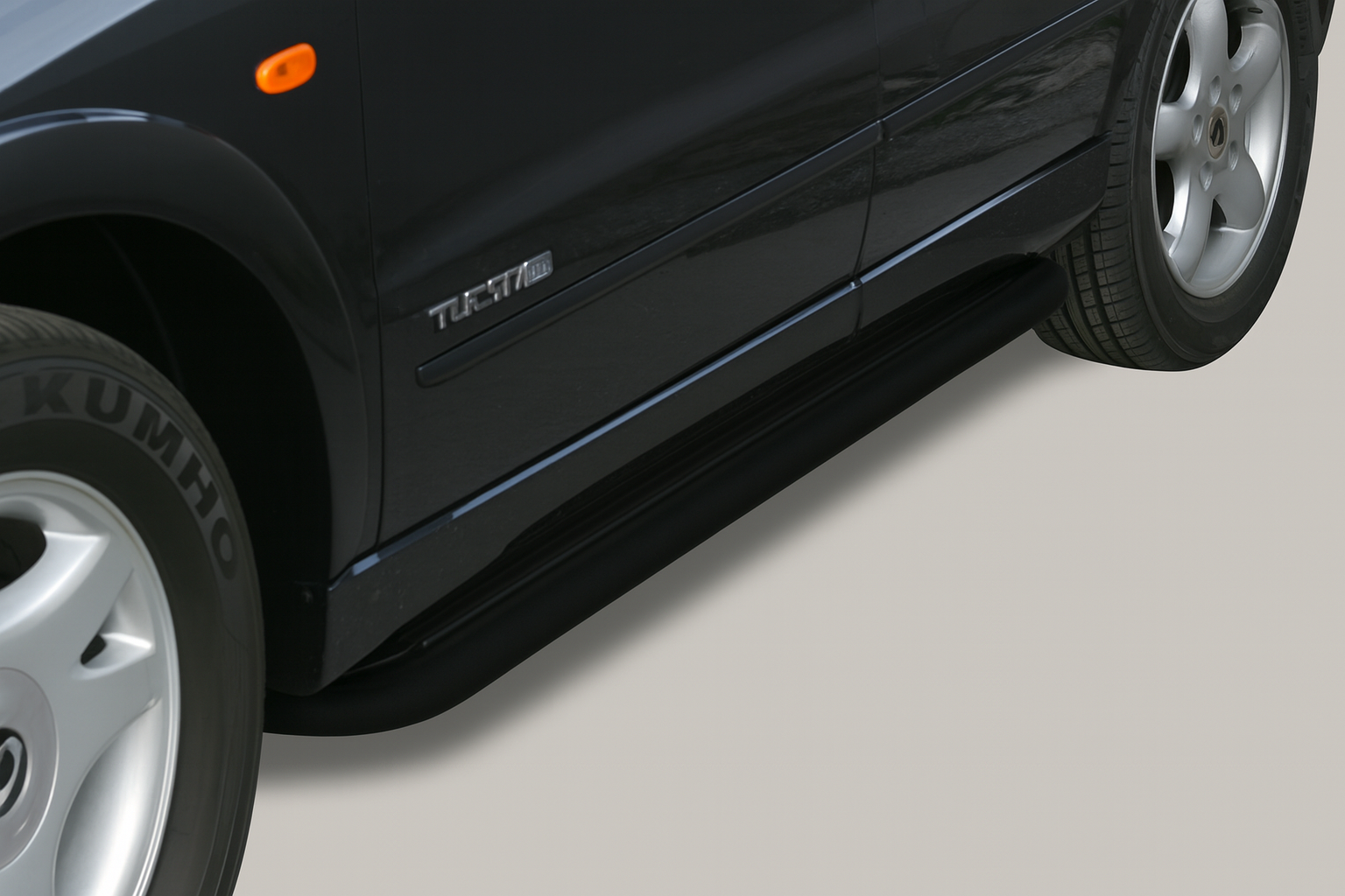Bescherm en verfraai je auto met een " Pedana " side step set van de Italiaanse topfabrikant: Misutonida, fabriceert deze side bars van hoogwaardig 50 mm RVS . De 100% op maat ontwikkelde steps geven je Ssangyong Actyon een robuuste uitstraling en beschermt de auto / dorpels tegen schade bij een aanrijding met obstakels.