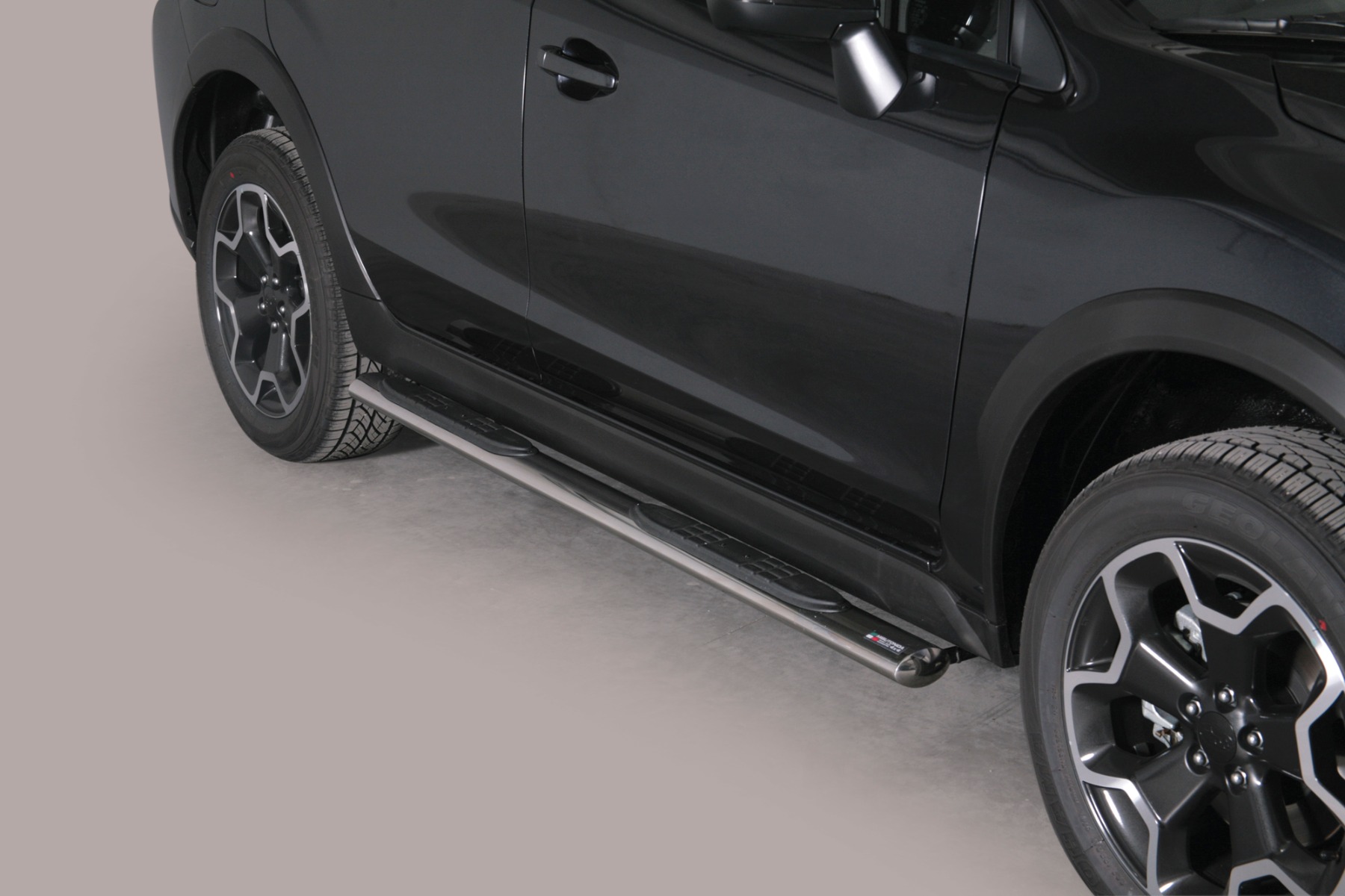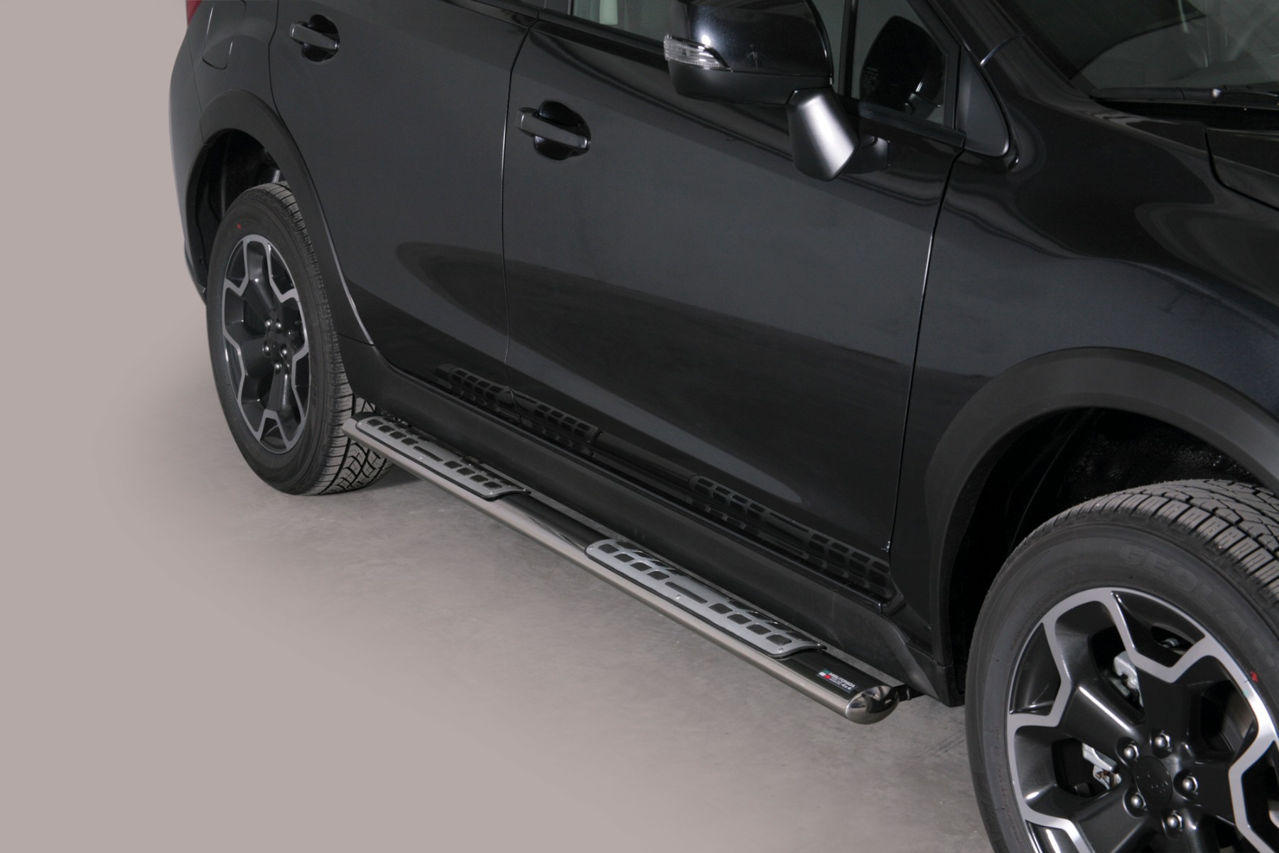 Bescherm en verfraai je auto met een " Design Side Protection " side step set van de Italiaanse topfabrikant: Misutonida, fabriceert deze side bars van hoogwaardig Ovaal mm RVS . De 100% op maat ontwikkelde steps geven je Subaru XV een robuuste uitstraling en beschermt de auto / dorpels tegen schade bij een aanrijding met obstakels.