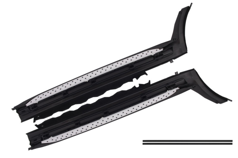 Running boards zijn gemaakt van ABS kunststof met een geribbeld oppervlak, waardoor geen verdere afwerking meer noodzakelijk is. Verder zijn de running boards voorzien van een aluminium board en rubberen antislip noppen. De draagbalk is van aluminium en staal.
