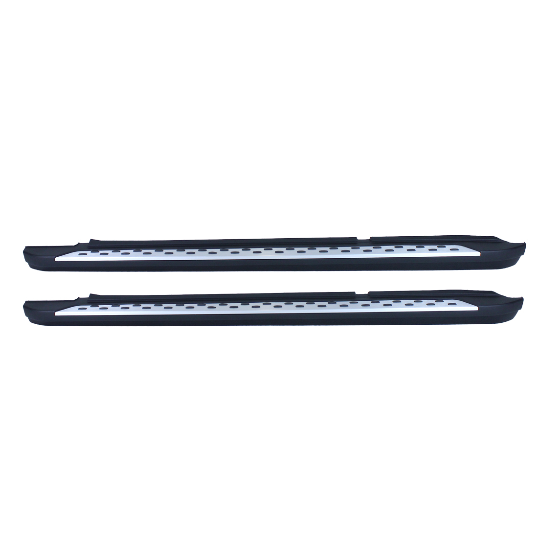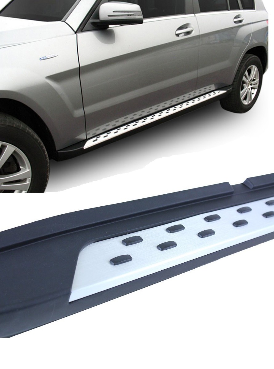 Deze running board geven uw Mercedes-Benz GLK X204 een luxe en robuuste uitstaling. Daarnaast zijn ze ook nog een praktisch bij het instappen. De running boards, ook wel treeplanken of side steps genoemd, zijn gemaakt van ABS kunststof met een aluminium bovenkant die weer voorzien is van de kenmerkende rechthoekige rubber antislip noppen. Door de stevig binnenste draagbalk zijn boards ook goed belastbaar (normaal gebruik instappen / uitstappen). De treeplanken zijn van goede kwaliteit en hebben een uitstekende pasvorm, en worden compleet met montagemateriaal geleverd.
