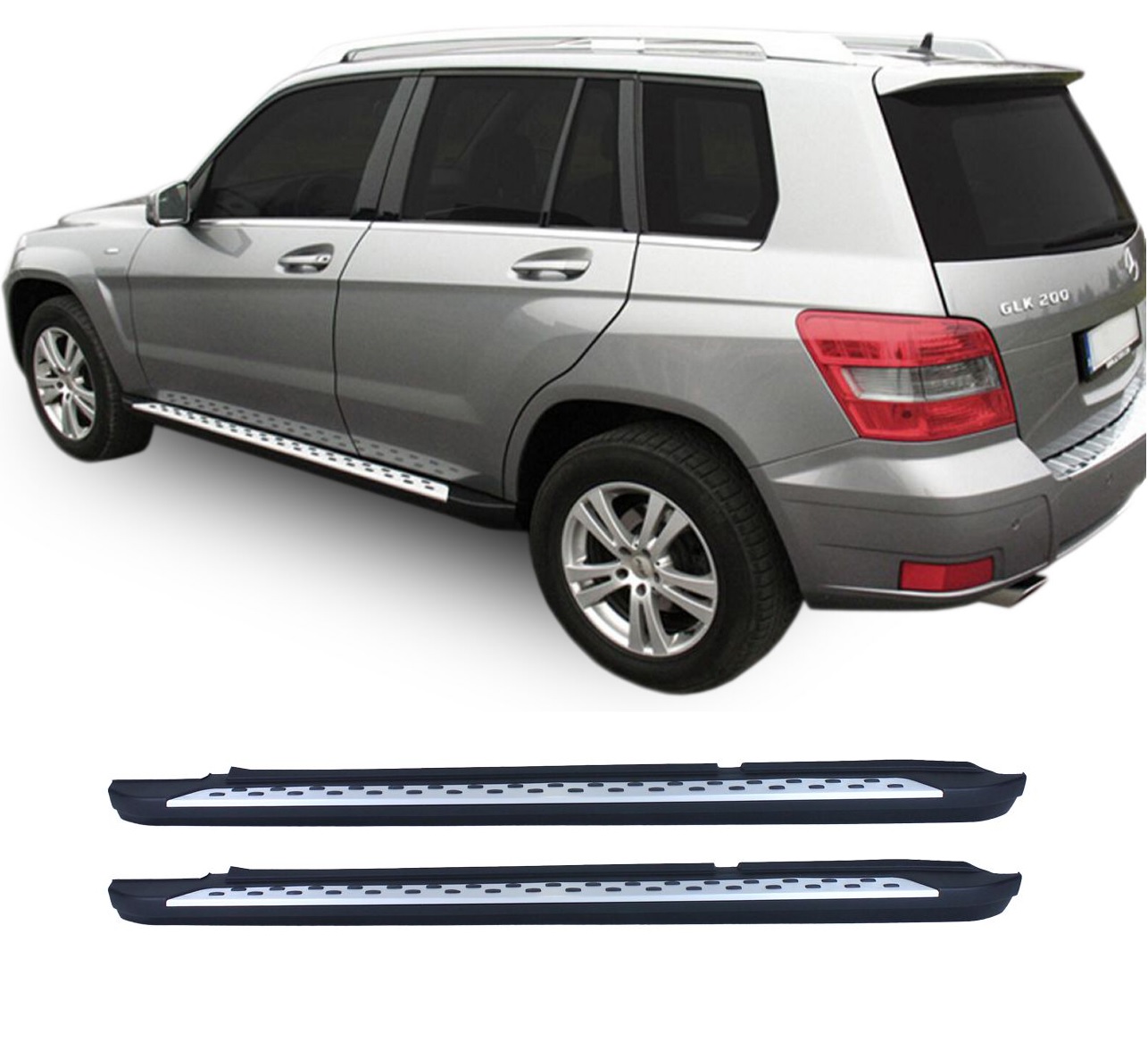 Compleet geleverde running boards inclusief montage materiaal voor Mercedes GLK-klasse X204 2008-2015. Treeplanken upgrade!