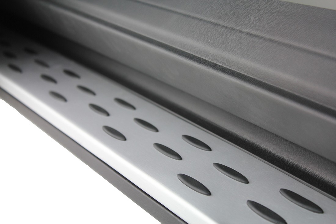 Running boards zijn gemaakt van ABS kunststof met een geribbeld oppervlak, waardoor geen verdere afwerking meer noodzakelijk is. Verder zijn de running boards voorzien van een aluminium board en rubberen antislip noppen. De draagbalk is van aluminium en staal.