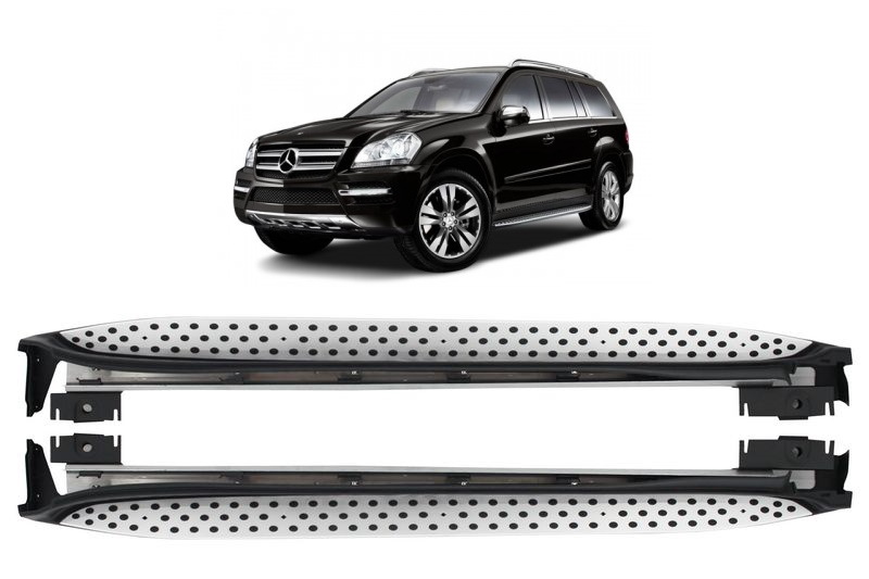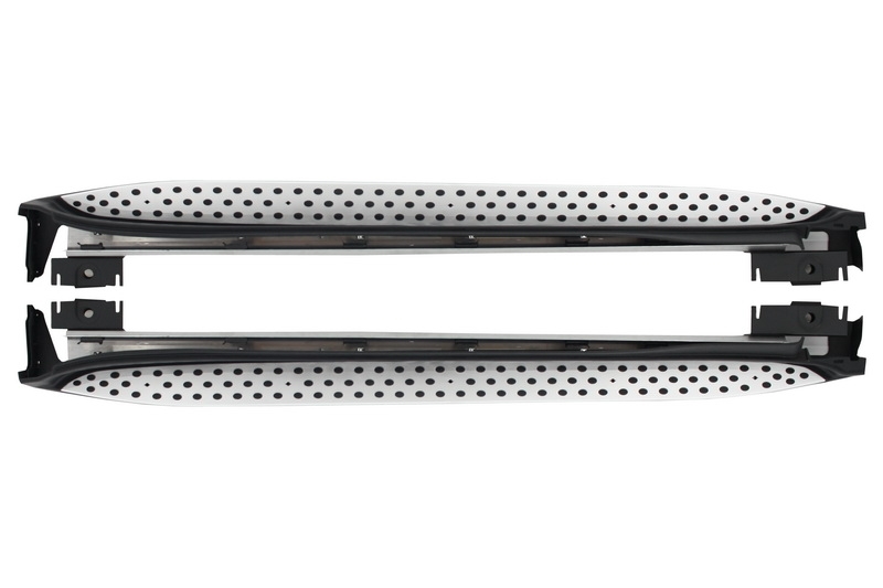 Deze running board geven uw Mercedes-Benz GL-Klasse X164 een luxe en robuuste uitstaling. Daarnaast zijn ze ook nog een praktisch bij het instappen. De running boards, ook wel treeplanken of side steps genoemd, zijn gemaakt van ABS kunststof met een aluminium bovenkant die weer voorzien is van rubberen antislip noppen. Door de stevig binnenste draagbalk zijn boards ook goed belastbaar (normaal gebruik instappen / uitstappen). De treeplanken zijn van goede kwaliteit en hebben een uitstekende pasvorm, en worden compleet met montagemateriaal geleverd.