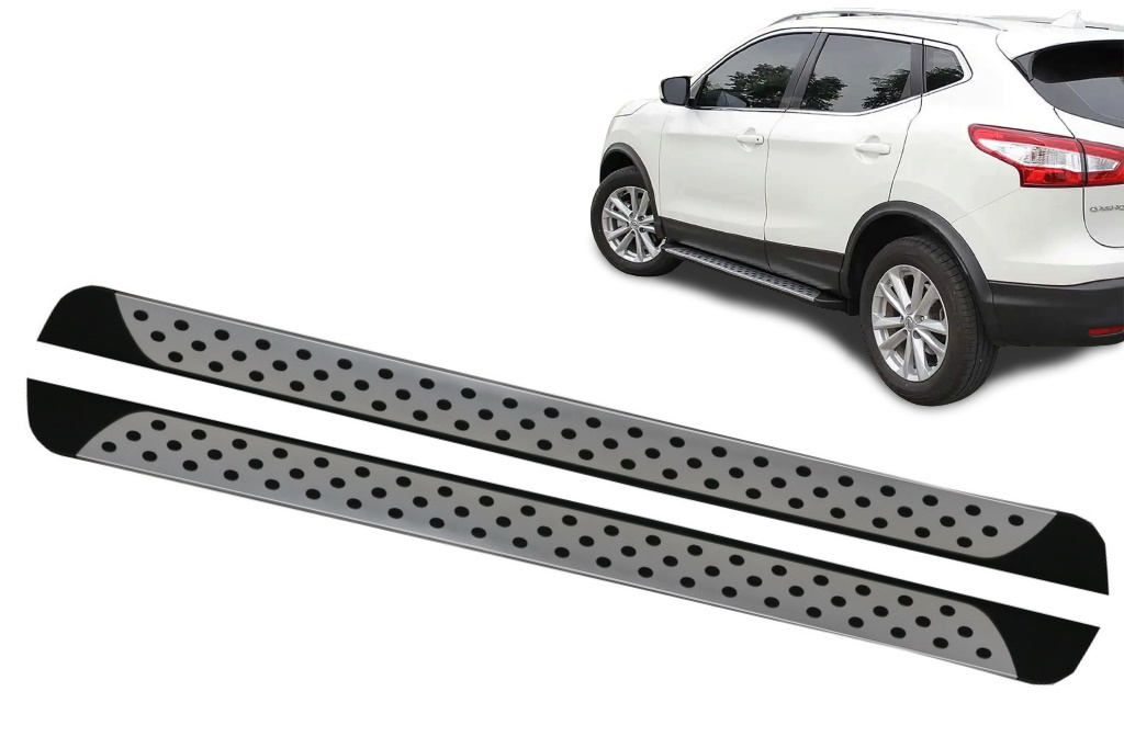 Betere looks en praktischer instappen met een treeplanken set voor Nissan Qashqai 2014-2017 modellen. De treeplank in originele look is voorzien van een aluminium board op een kunststof running board. Het aluminium gedeelte is voorzien van de kenmerkende rubber noppen.