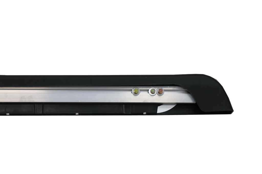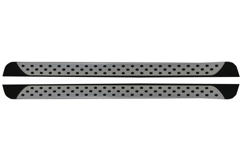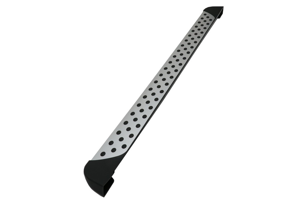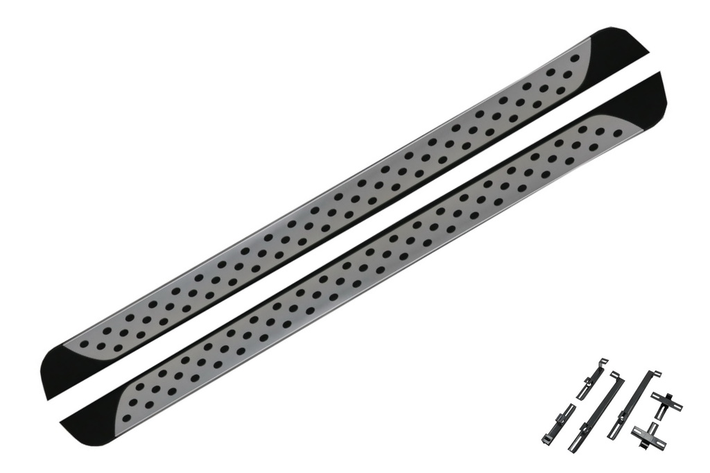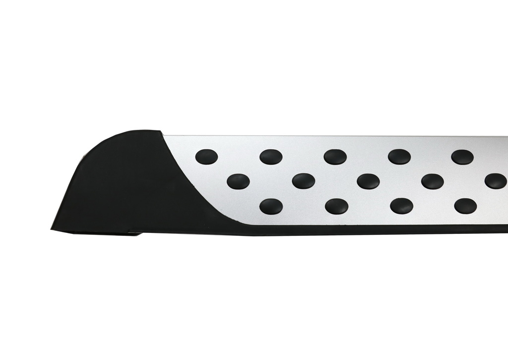 Running boards zijn van ABS kunststof met geribbelde oppervlakte. Verder voorzien van een aluminium board en rubber noppen.