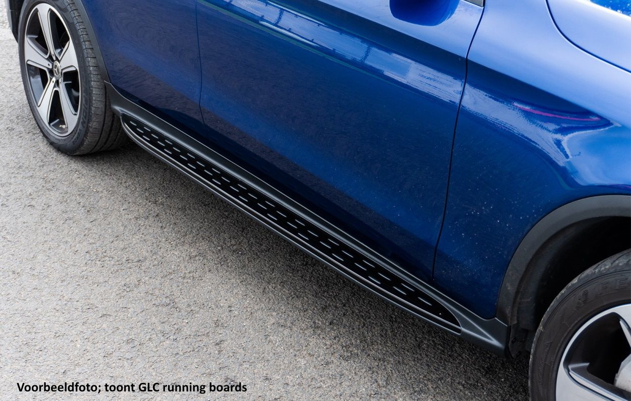 Running boards zijn gemaakt van ABS kunststof met een geribbeld oppervlak, waardoor geen verdere afwerking meer noodzakelijk is. Verder zijn de running boards voorzien van een aluminium board (glanzend zwart) en rubberen antislip noppen. De draagbalk is van aluminium en staal.