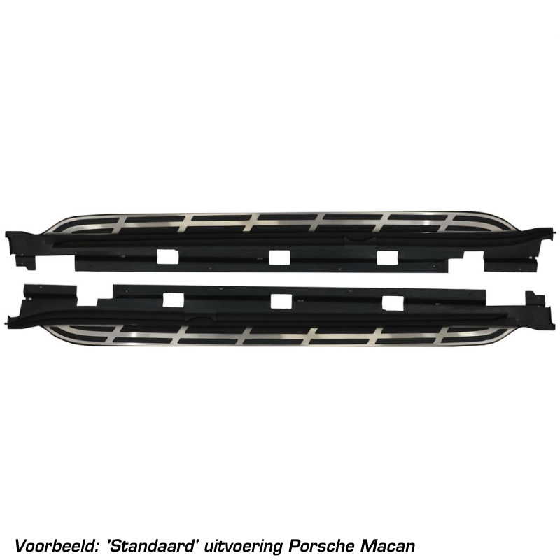 Compleet geleverde Full Black running boards, inclusief montage materiaal, voor Porsche Macan (type 95B) 2014->. Treeplanken upgrade!