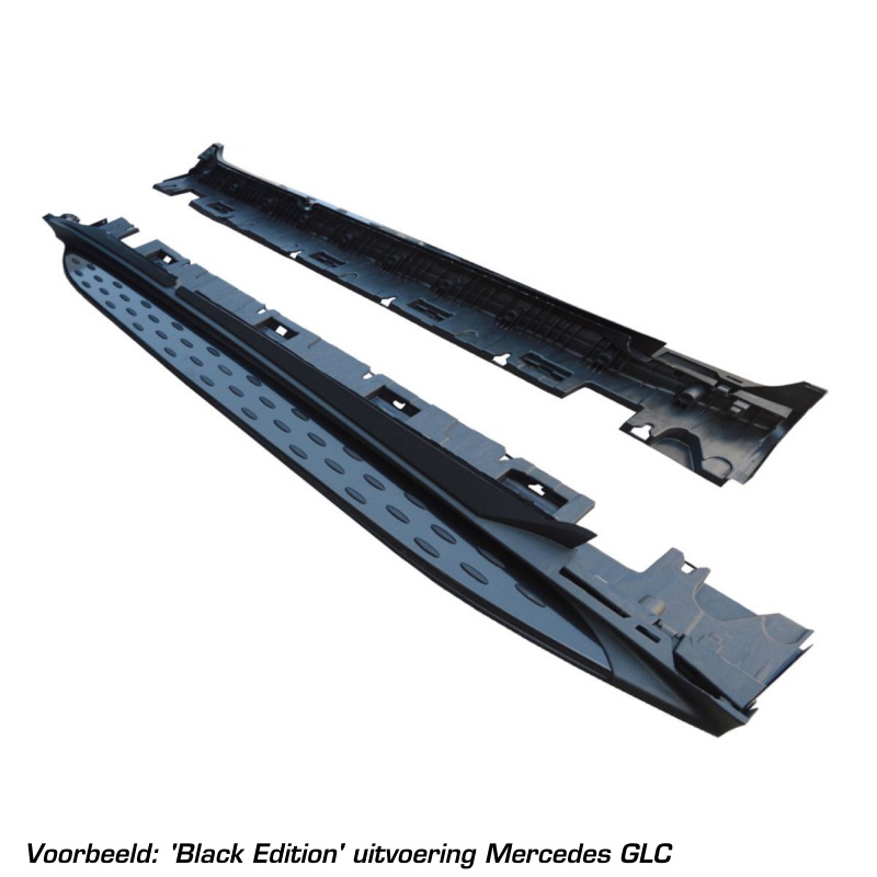 Running boards zijn gemaakt van ABS kunststof met een geribbeld oppervlak, waardoor geen verdere afwerking meer noodzakelijk is. Verder zijn de running boards voorzien van een aluminium board (glanzend zwart) en rubberen antislip noppen. De draagbalk is van aluminium en staal.