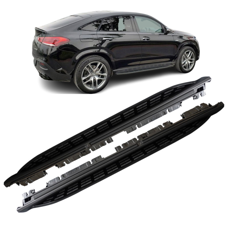 Compleet geleverde Full Black running boards, inclusief montage materiaal, voor Mercedes-Benz GLE-klasse Coupé C167 2020->. Treeplanken upgrade!