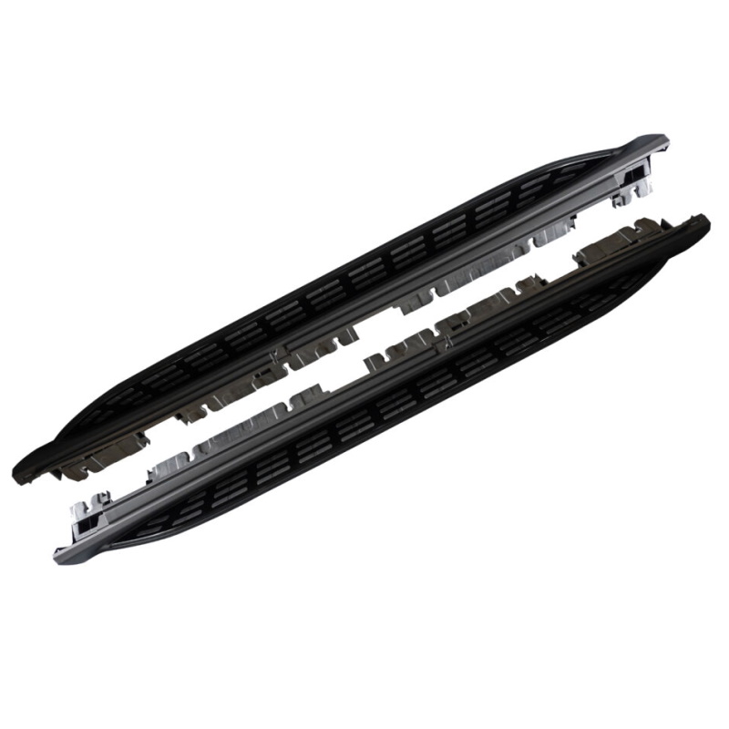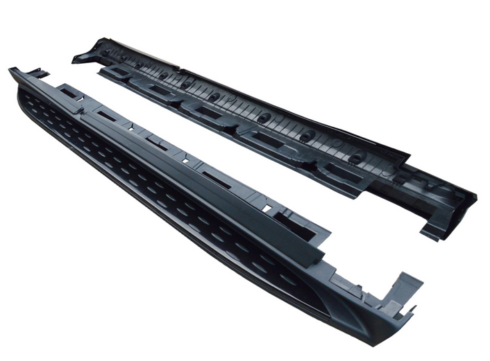 Running boards zijn gemaakt van ABS kunststof met een geribbeld oppervlak, waardoor geen verdere afwerking meer noodzakelijk is. Verder zijn de running boards voorzien van een aluminium board (zwart) en rubberen antislip noppen. De draagbalk is van aluminium en staal.