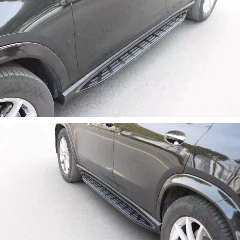 Deze running boards geven uw Mercedes-Benz GLE-klasse Coupé C167 een luxe en robuuste uitstaling. Maar met deze Night Edition uitvoering maak je jouw GLE helemaal af. De "standaard" running boards worden geleverd met een aluminium board met geborstelde afwerking. De Black Edition kenmerkt zich juist door het glanzend zwarte board, want mooi past bij de andere zwarte elementen van de auto. Hierdoor krijgt jouw Mercedes een unieke en exclusieve uitstaling. Daarnaast zijn ze ook nog een praktisch bij het instappen.