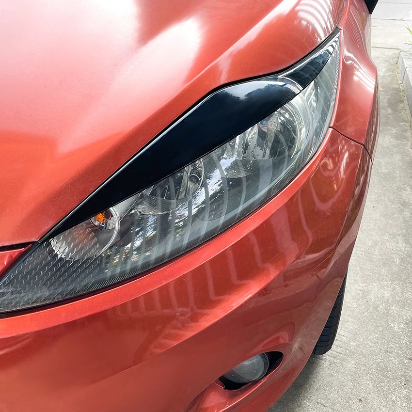 Koplampspoiler set voor Ford Fiesta (MK6) 2008-2012, pre-faceliftmodel. De booskijkers hebben een goede pasvorm en zijn afgewerkt in glanzend zwart.