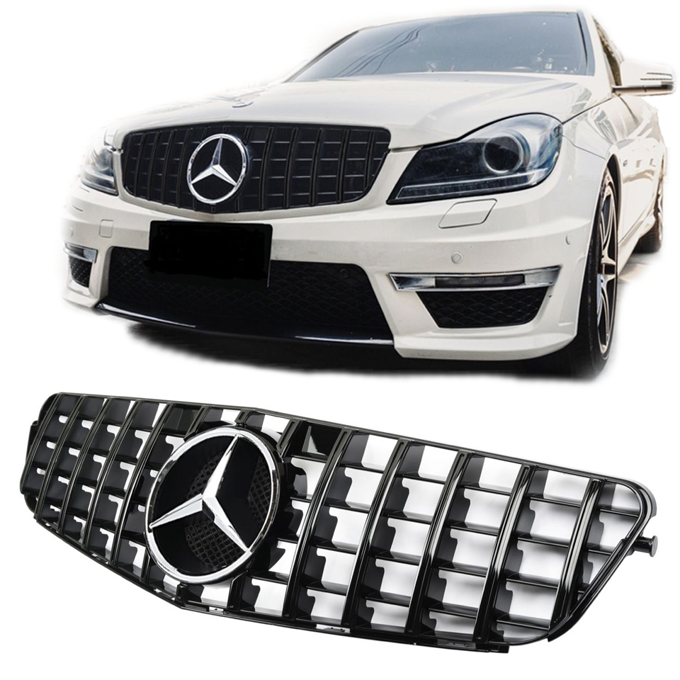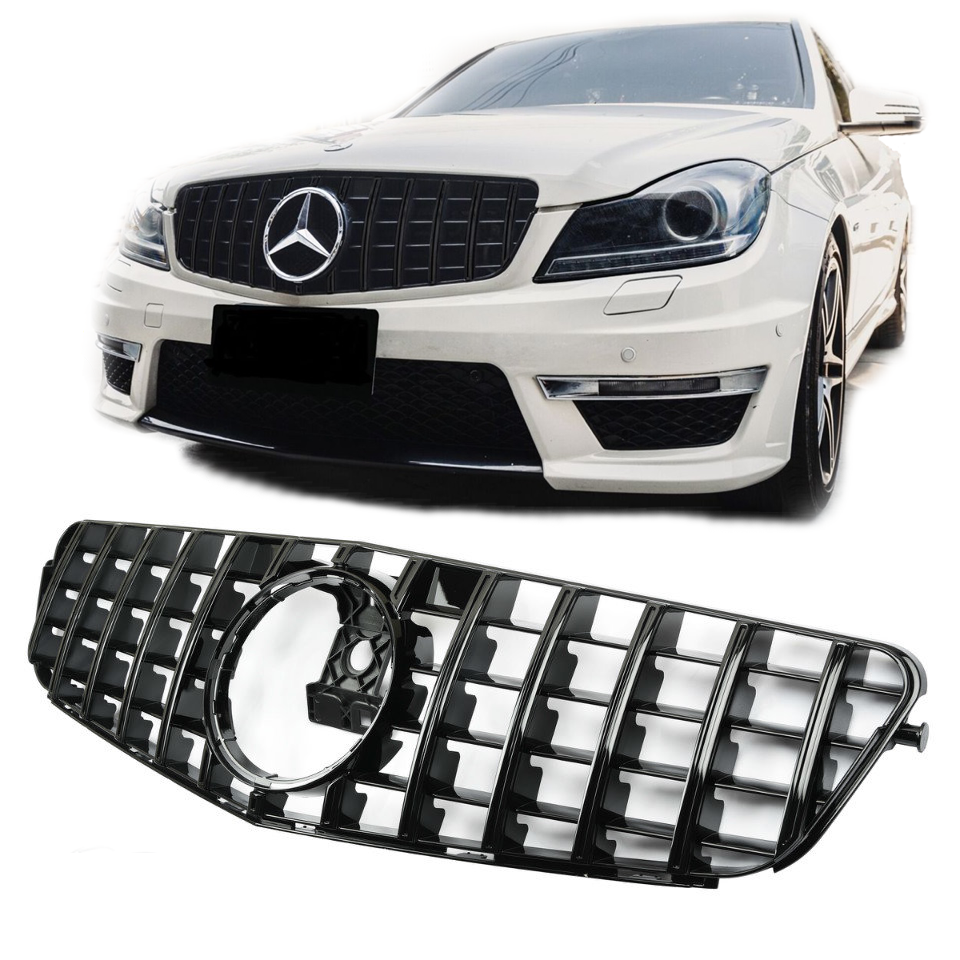 Grill | Mercedes-Benz | C-klasse 07-14 4d sed. W204 / C-klasse Coupé 11-15 2d cou. / C-klasse Estate 07-14 5d sta. | PANAMERICANA GT GT-R - Look | Met Mercedes ster Glanzend zwart