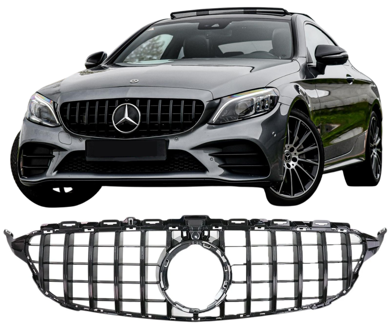 Geef jouw Mercedes-Benz C-Klasse (2018–2021) een opvallende upgrade met deze Panamericana grill in AMG GT-Look. Het ontwerp met verticale spijlen en een glanzend zwart frame zorgt voor een agressieve en sportieve uitstraling. Perfect passend bij de W205 sedan, S205 estate of C205 coupé modellen zonder 360° camera.