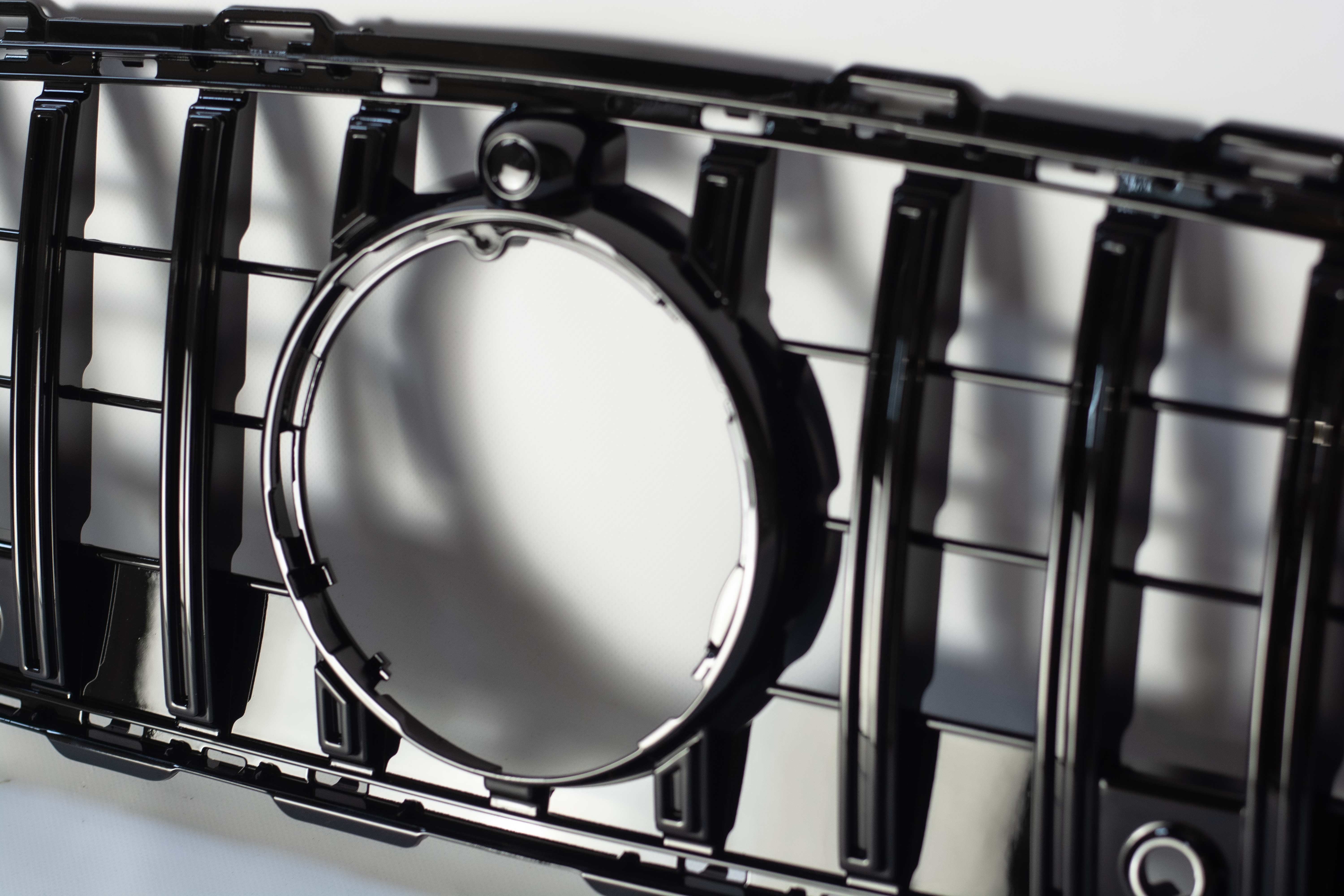 Met deze PANAMERICANA AMG GT-Look grill geeft u uw Mercedes C-Klasse W206 & C-klasse Estate S206 AMG-Line een luxe en sportieve uitstraling. De PANAMERICANA grill, ook wel GT-R grill, kenmerkt zich door het opvallende verticale hekwerk, wat zorgt voor de sportieve uitstraling. Deze Carnamics grill is van goede kwaliteit en heeft een uitstekende pasvorm! De grill is compatibel met Parktronic, Distronic / Advanced Cruise Control (ACC) en geschikt voor zowel auto's met als zonder 360º camera, dummy meegeleverd.
