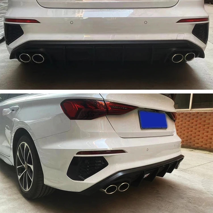 S3-look diffuser / bumper inzet voor Audi A3 en S3 (8Y). Met deze diffuser geef je jouw Audi een sportieve, maar ook een agressieve uitstraling. De diffuser is van hoge kwaliteit en heeft een uitstekende pasvorm. Geschikt als vervanging en upgrade.