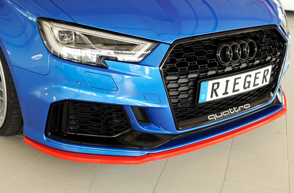 Rieger spoilerzwaard in ongespoten uitvoering voor Audi RS3 (8V) alleen in combinatie met originele voorbumper (Incl. Montagemateriaal)