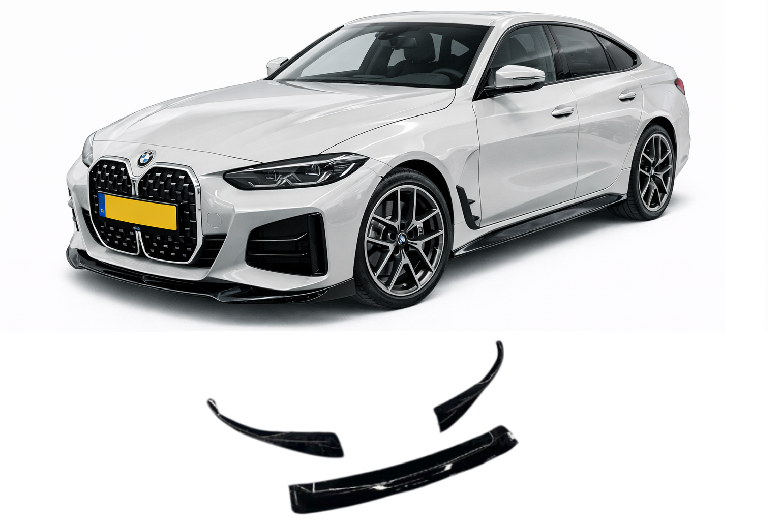 Voorspoiler | BMW 4-serie G26 | 2021+ | M-look | 3-Delig | glanzend zwart