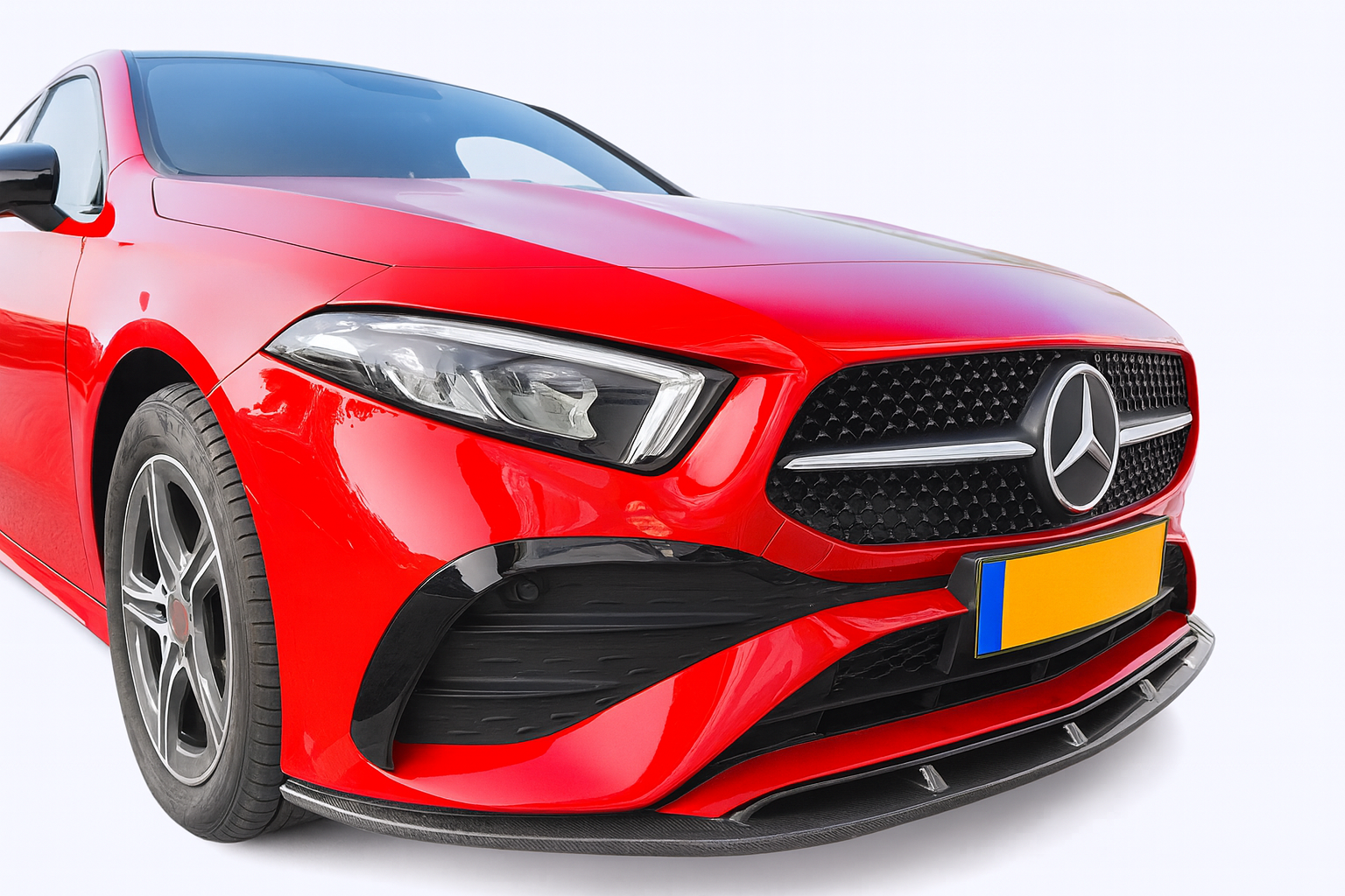 Voorspoiler voor Mercedes-Benz A-klasse W177 2022->. Alleen passend in voor AMG-Line & A35 AMG uitvoering. Bumper upgrade!