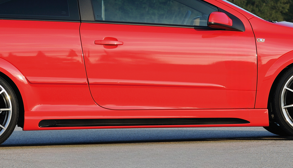 Rieger side skirt links, met schacht, met uitsnede, ABS-kunststof, Carbon-Look, inclusief aluminium racegaas, TUV-keuring, MontagemateriaalGeschikt voor: