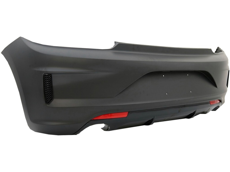 R-look achterbumper voor Volkswagen Scirocco, alleen voor facelift model. De bumper dient als vervanging voor auto's met R bumper, maar is ook geschikt als upgrade van auto's met standaard bumper. Met deze complete achterbumper krijgt jouw Scirocco met standaard bumper de sportieve uitstraling van de R uitvoering. De bumper wordt gekenmerkt door de duplex diffuser voor enkele pijp (links / rechts) rond. De Carnamics bumper is gemaakt van hoogwaardig ABS-kunststof en heeft een uitstekende pasvorm.