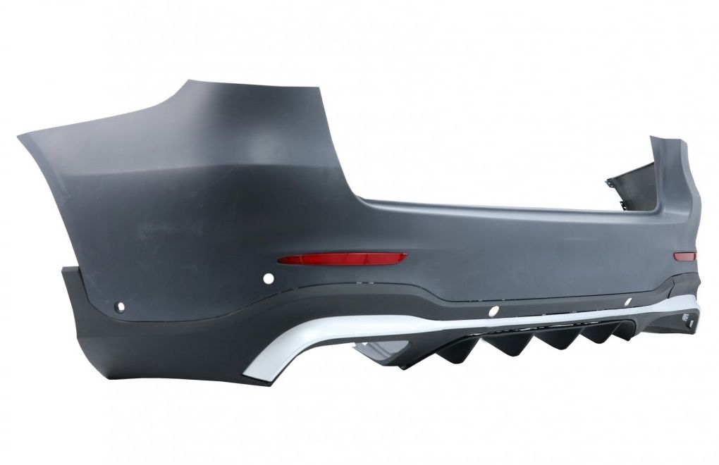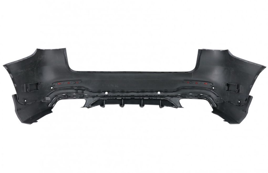 Achterbumper; bumperhoes, reflectors, diffuser, uitlaatsierstukken en PDC-houders.