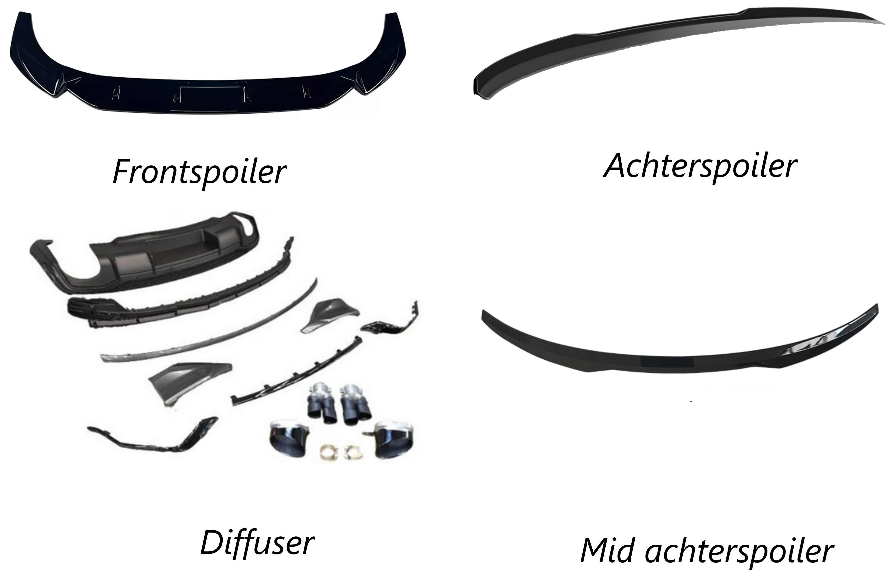 Geplaatst onder de achterruit, net boven de achterlichten. Deze spoiler vormt een stijlvol verlengstuk van de achterklep en accentueert de breedte van het voertuig.