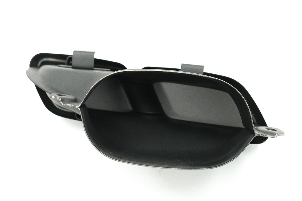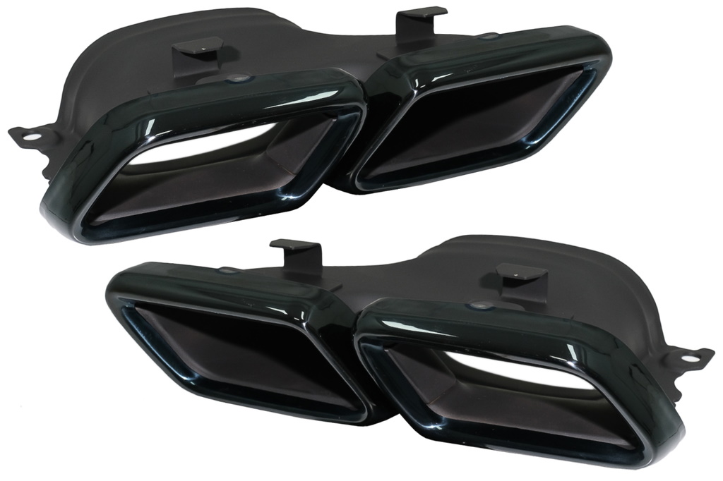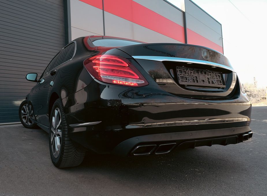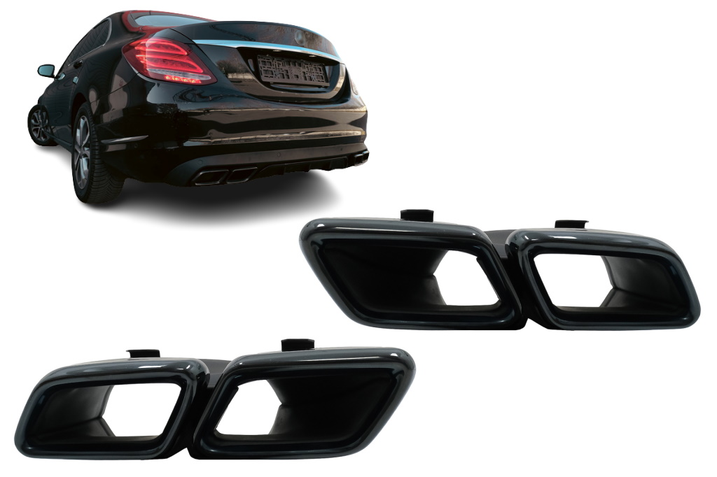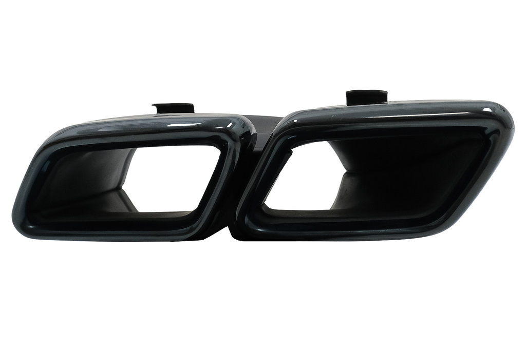 Uitlaatsierstukken in AMG-Look voor Mercedes C-klasse W205, A205, C205 & S205 2014-2018. Alleen geschikt in combinatie met AMG diffuser. Geschikt voor zowel vervanging als upgrade!
