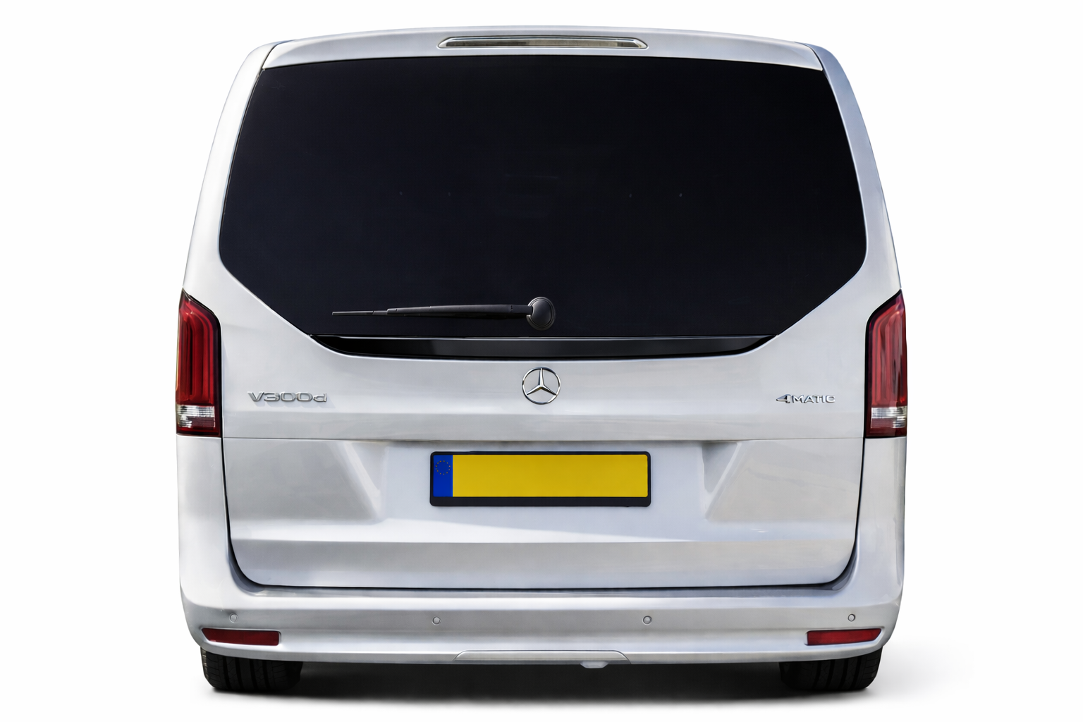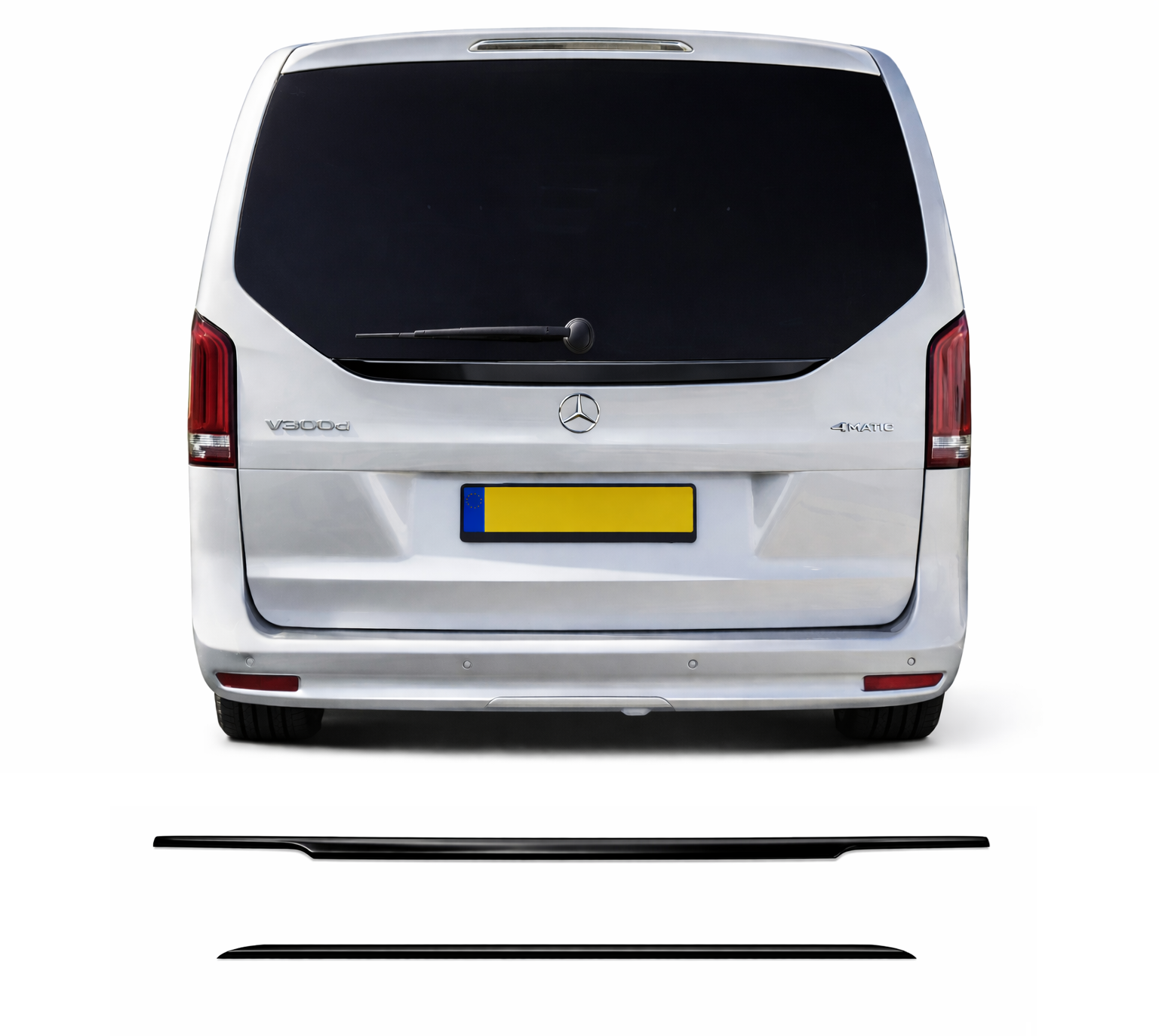 Strakke zwarte achterklep lijst voor Mercedes-Benz V-Klasse/Vito (W448 2025+), speciaal ontworpen voor voertuigen met achterklep.