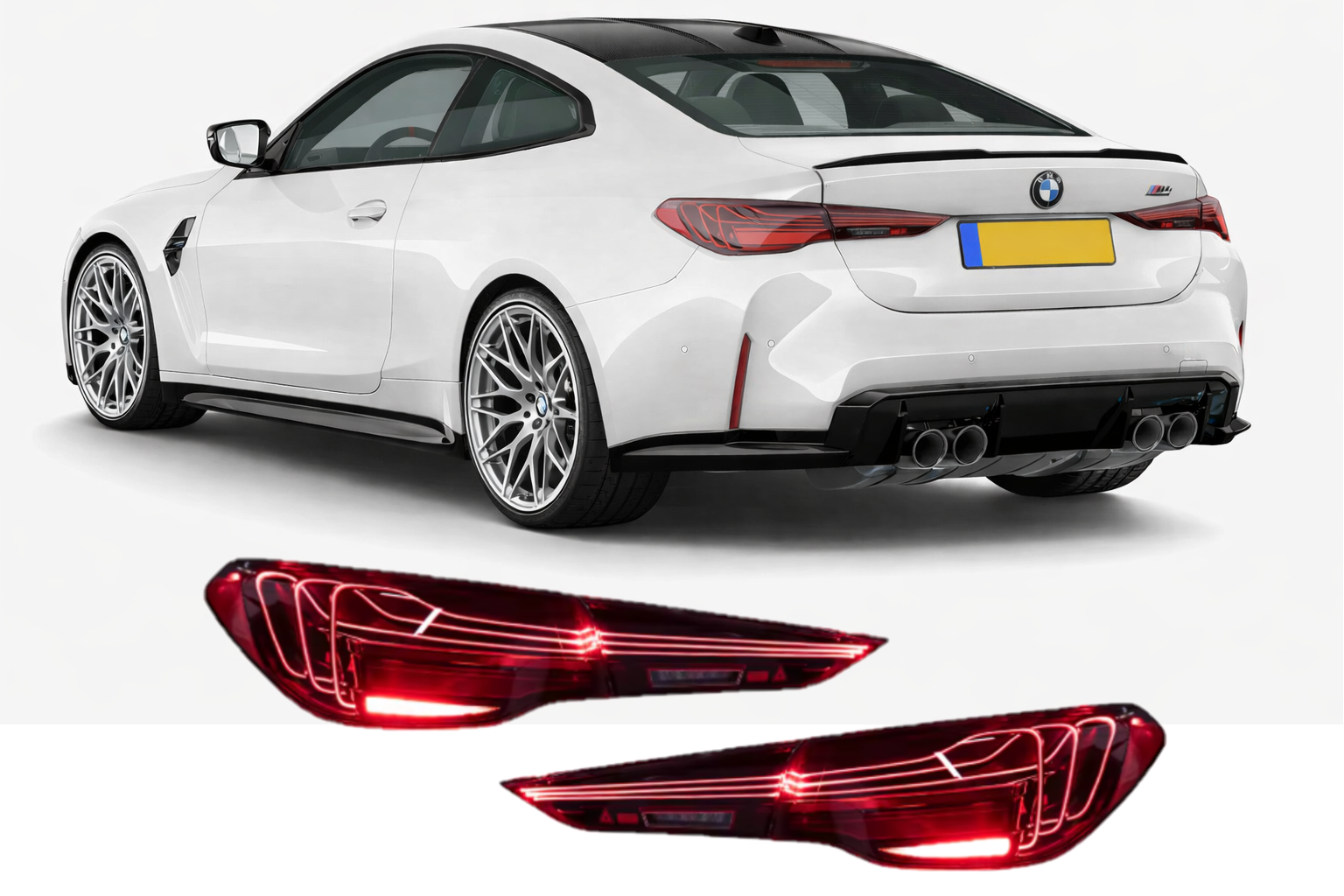 Sportieve rode Laser Light achterlichten voor BMW 4-serie en M4, met perfecte pasvorm en moderne uitstraling.