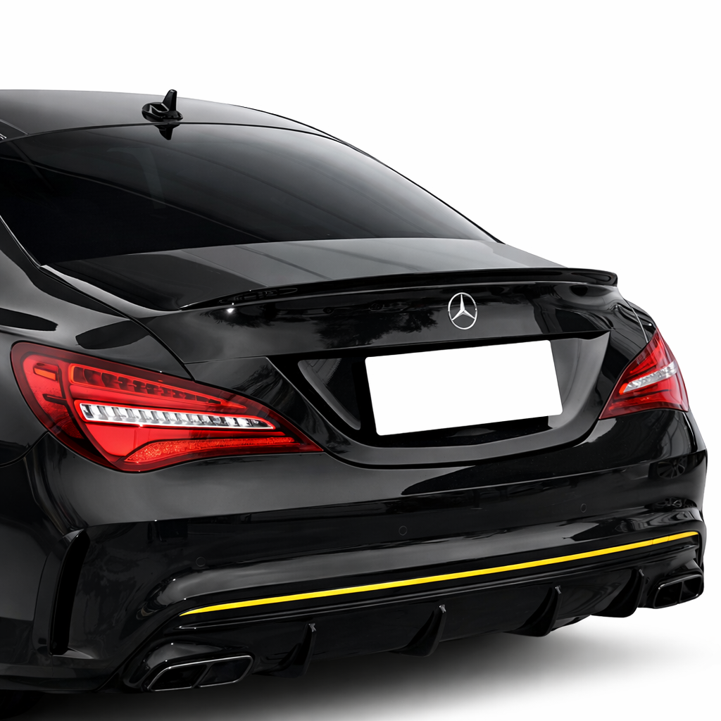 Met deze sportieve achterspoiler geeft u uw Mercedes-Benz C117 CLA45 AMG (2013-2019) een dynamische en stijlvolle upgrade aan de achterzijde. Het design accentueert de kofferklep en zorgt voor een strakke, sportieve uitstraling. De achterspoiler is vervaardigd uit hoogwaardig ABS-kunststof en uitgevoerd in glanzend zwart voor een nette afwerking en uitstekende pasvorm.