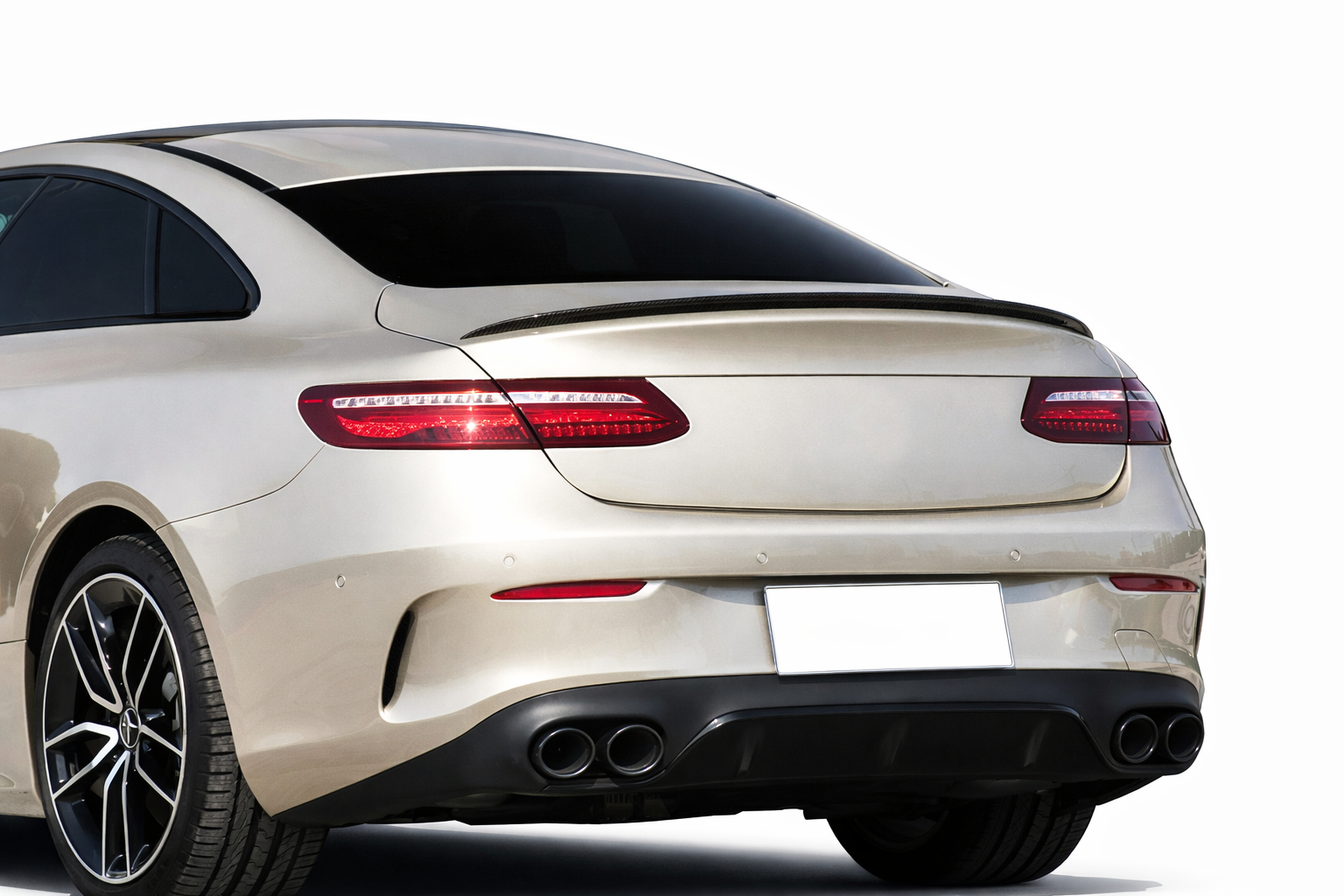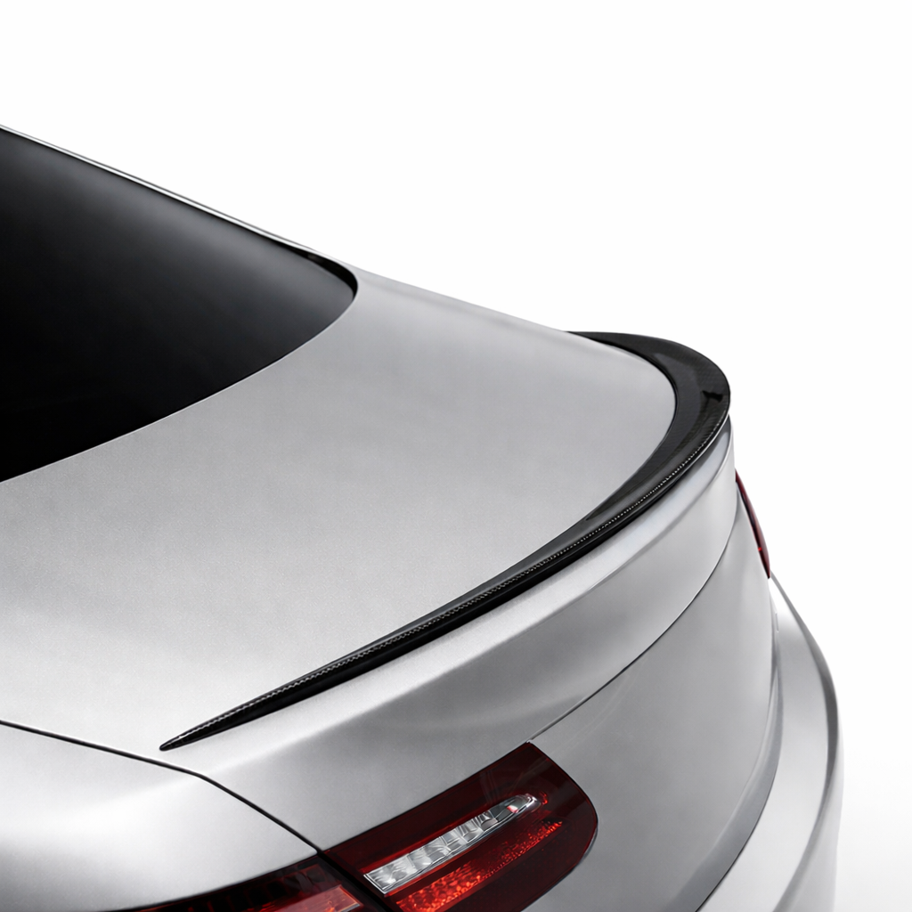 Voertuigspecifieke pasvorm voor de Mercedes-Benz E-Klasse Coupé C238; sluit netjes aan op de originele lijnen van de kofferklep en achterzijde.