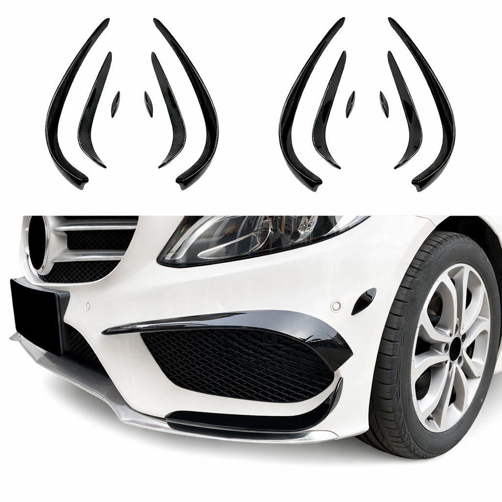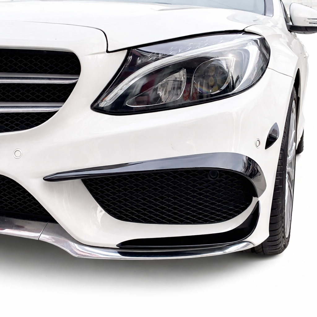 Met deze sportieve aero spoilers geef je jouw Mercedes-Benz C-Klasse W205 / A205 / C205 / S205 Pre-facelift (AMG-line, 2014–2018) een exclusieve en krachtige upgrade aan de voorzijde. De aero spoilers zijn speciaal ontworpen in C43 AMG-look voor de AMG-line uitvoering en benadrukken met hun scherpe, dynamische lijnen het sportieve karakter van de C-Klasse.