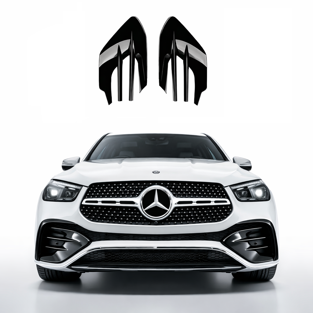 Met deze sportieve air intakes geeft u uw Mercedes-Benz GLE-Klasse W167 Facelift AMG-Line (2024–heden) of GLE-Klasse Coupé C167 Facelift AMG-Line (2024–heden) een dynamische en stijlvolle upgrade aan de voorzijde. Deze air intakes zijn speciaal ontworpen voor de voorbumper en zorgen met hun strakke lijnen voor een nog sportievere en modernere uitstraling. Naast de visuele meerwaarde dragen de air intakes bij aan een strakke en verfijnde afwerking van de luchtopeningen, passend bij het krachtige design van de GLE.