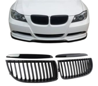 Grillen set | Nieren | BMW 3-Serie | E90 sedan / E91 touring | 2005-2008 | Glanzend zwart