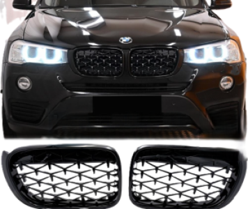 Grillen set | Nieren | BMW X3 F25 LCI / X4 F26 | 2014-2016 | Glanzend zwart Diamond