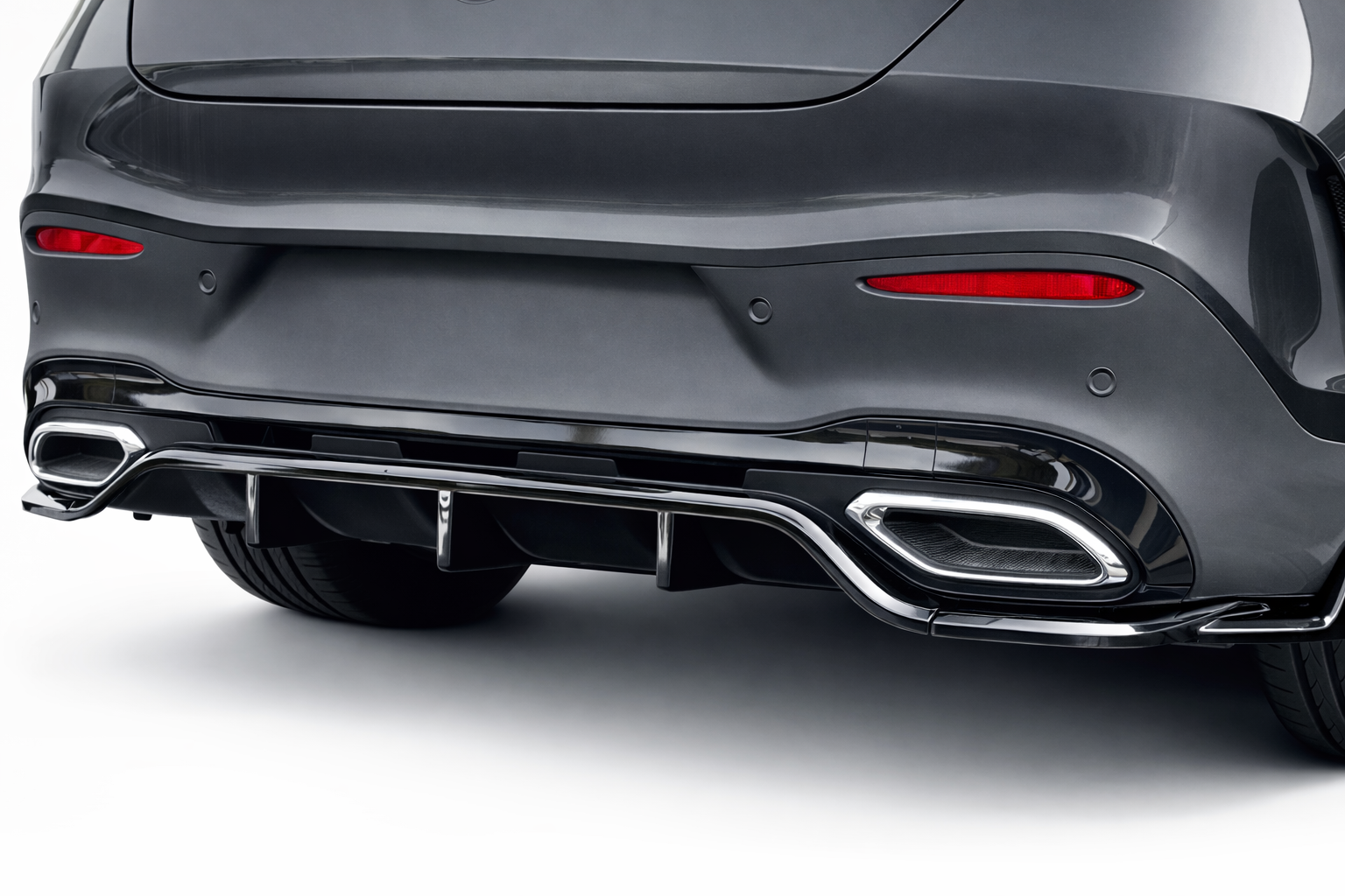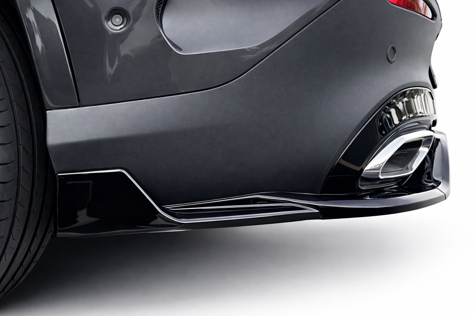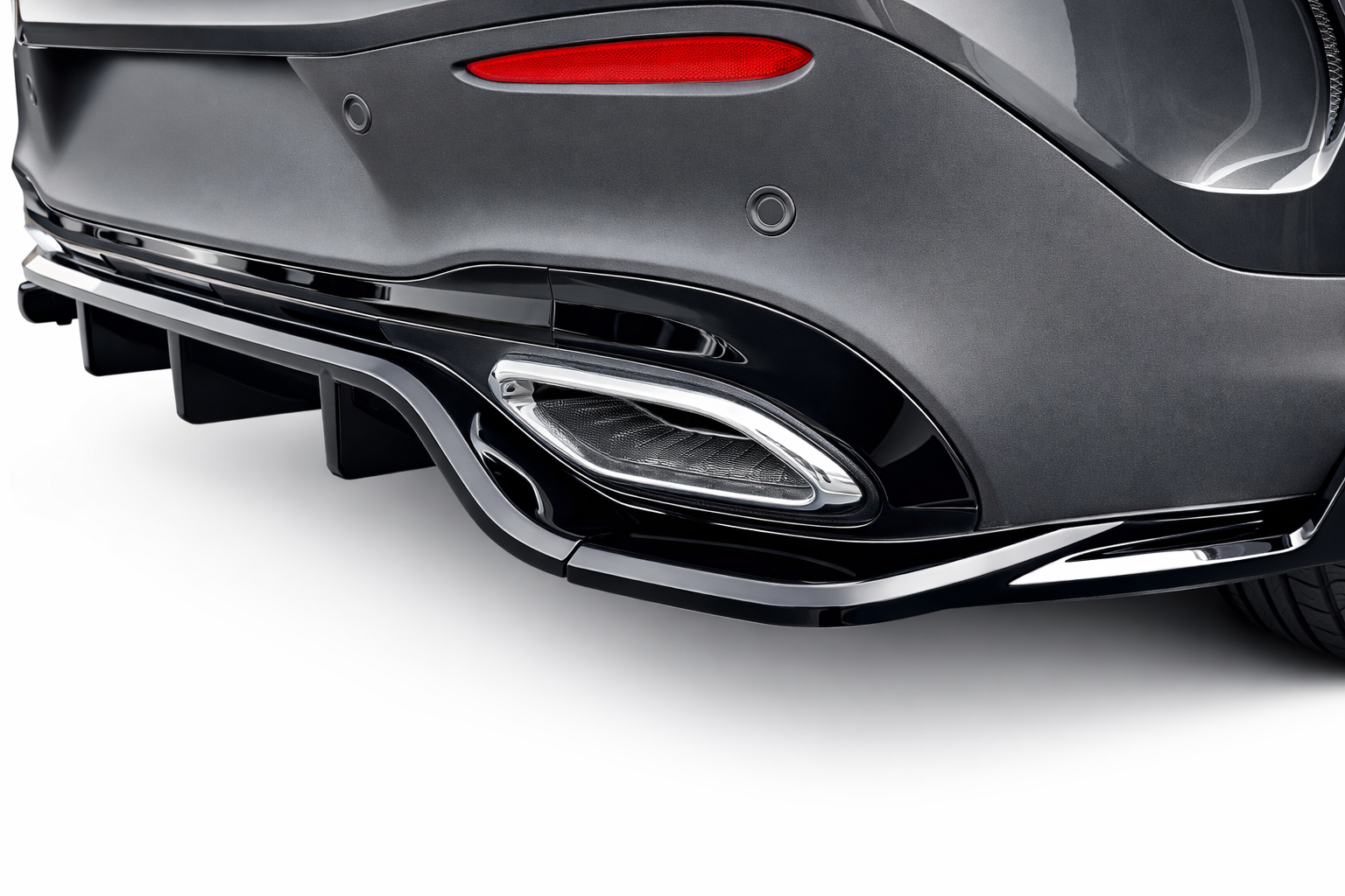 Voertuigspecifieke pasvorm voor de C254 AMG Line; sluit netjes aan op de originele achterbumper.