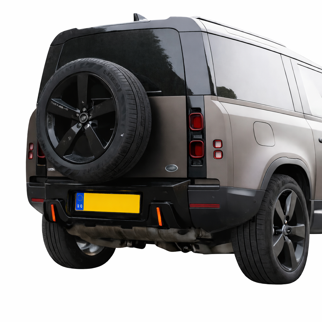 Geef uw Land Rover Defender L663 (2019+) een stijlvolle upgrade met deze glanzend zwarte diffuser met LED in ROCK-Look, speciaal passend voor de 90, 110 en 130.