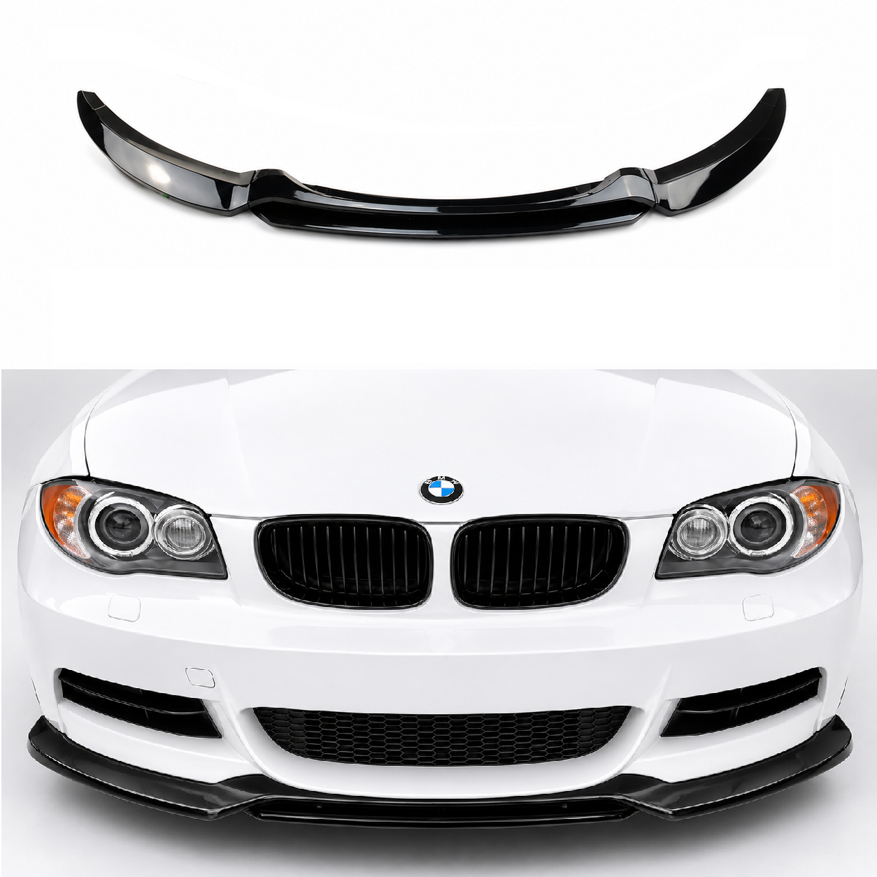 Geef je BMW 1-Serie E82 / E88 LCI (2008-2013) een opvallende upgrade met onze hoogwaardige frontlip (3pcs) in glanzend zwart. Deze speciaal ontworpen frontlip sluit perfect aan op de originele voorbumper en benadrukt de sportieve uitstraling van het voertuig.