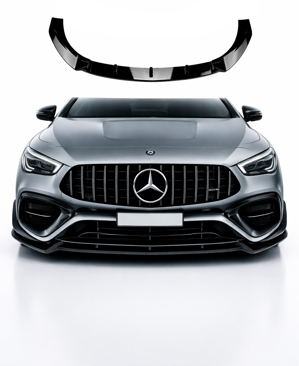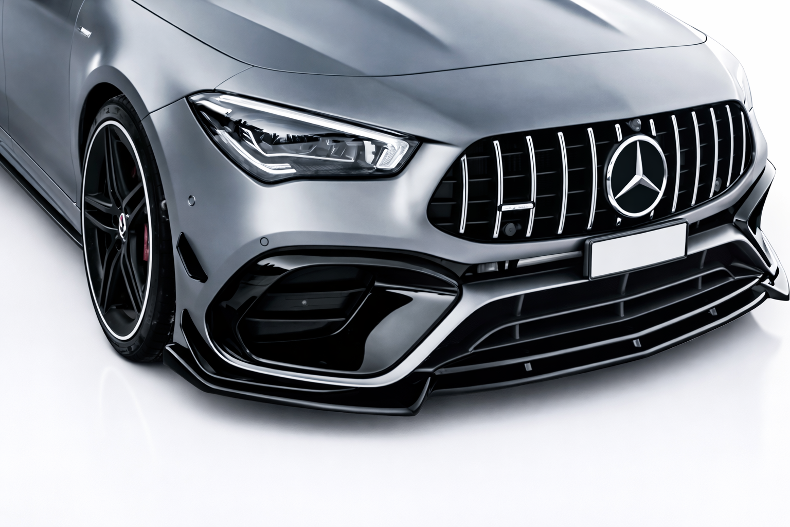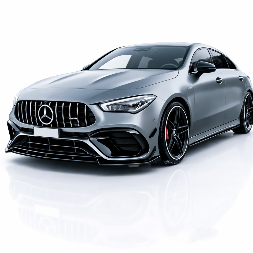 Het strakke design versterkt de dynamische lijnen van de voorzijde en zorgt voor een lagere, agressievere look die perfect aansluit op het moderne en performancegerichte karakter van de CLA45 AMG.