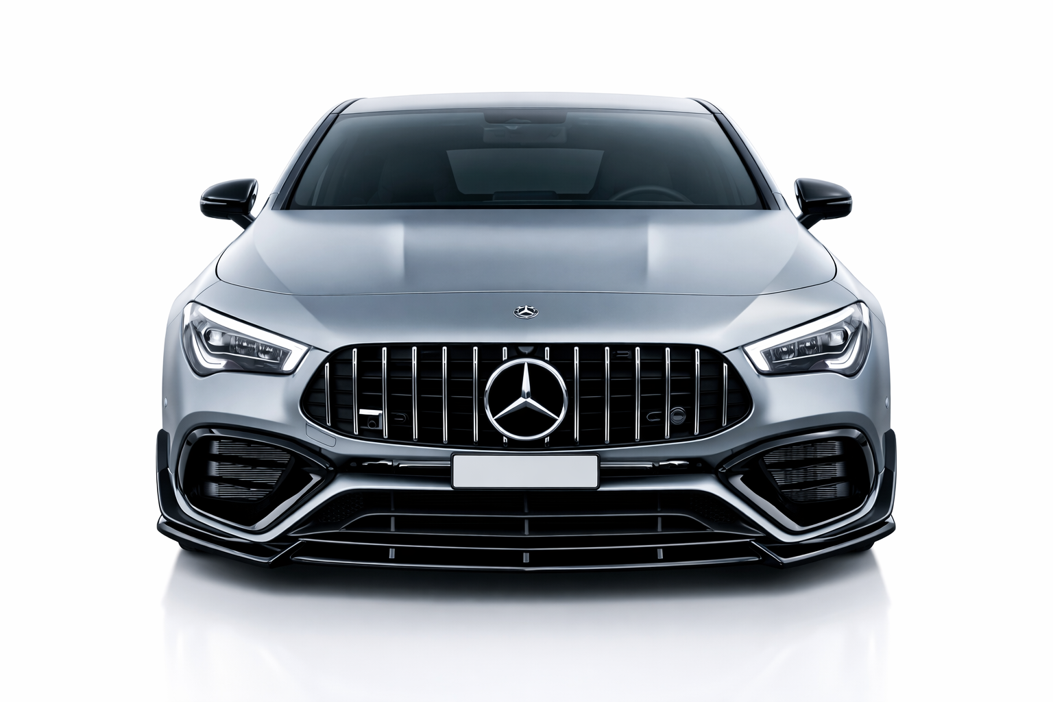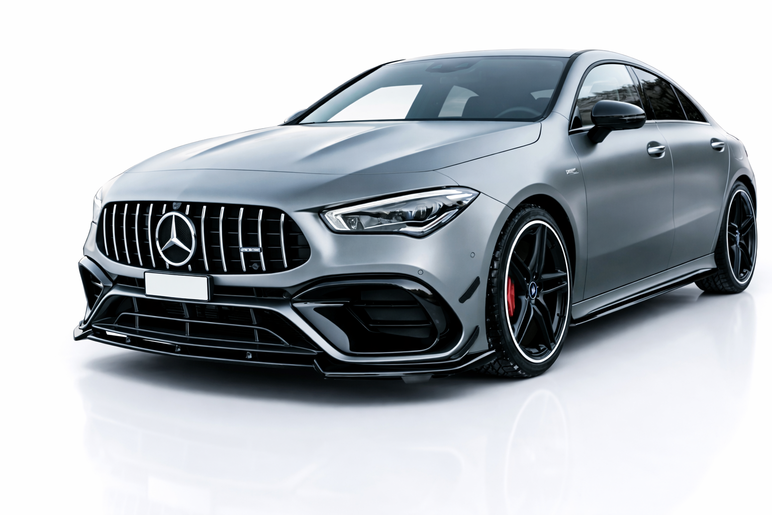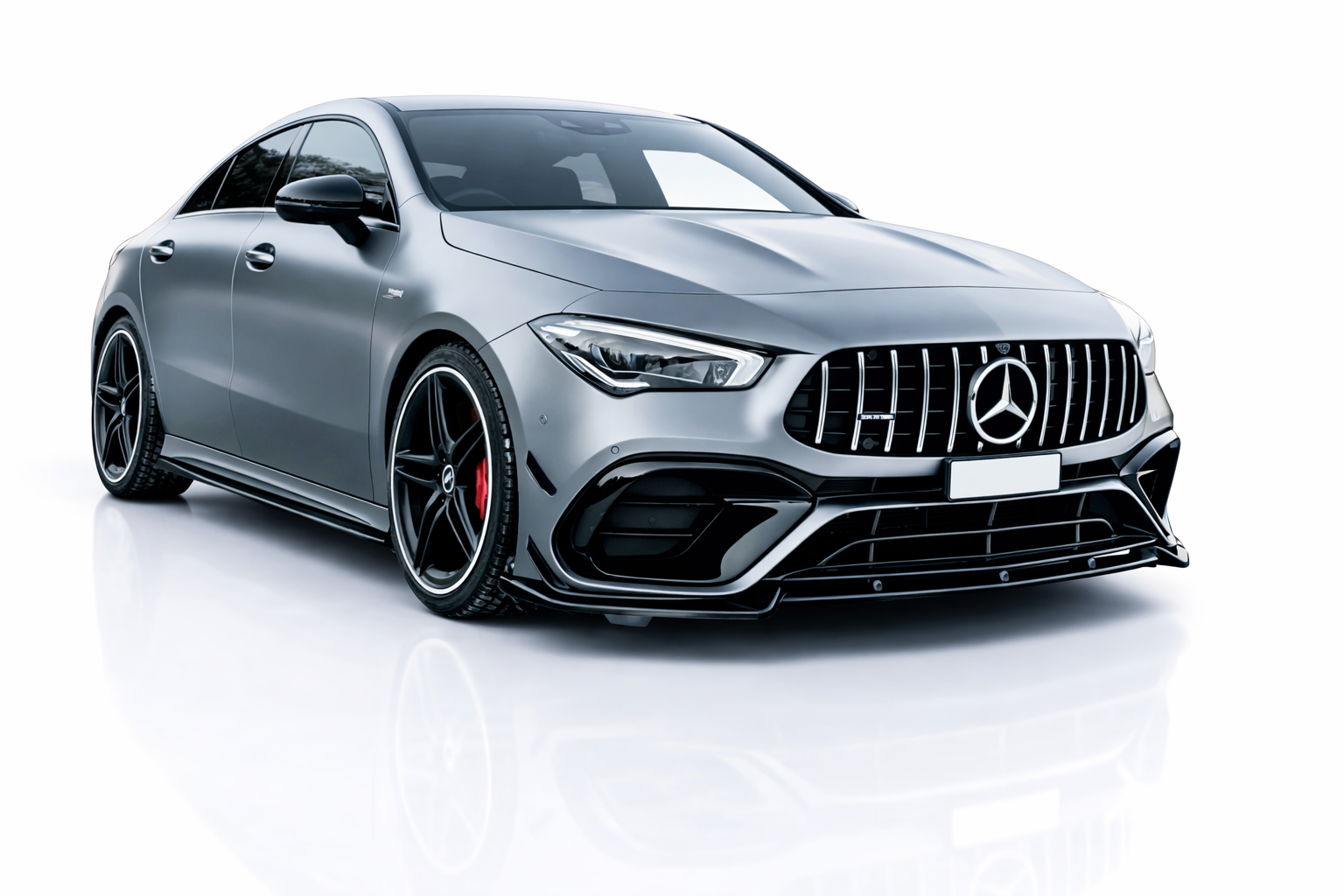 Het strakke design versterkt de dynamische lijnen van de voorzijde en zorgt voor een lagere, agressievere look die perfect aansluit op het moderne en performancegerichte karakter van de CLA45 AMG.